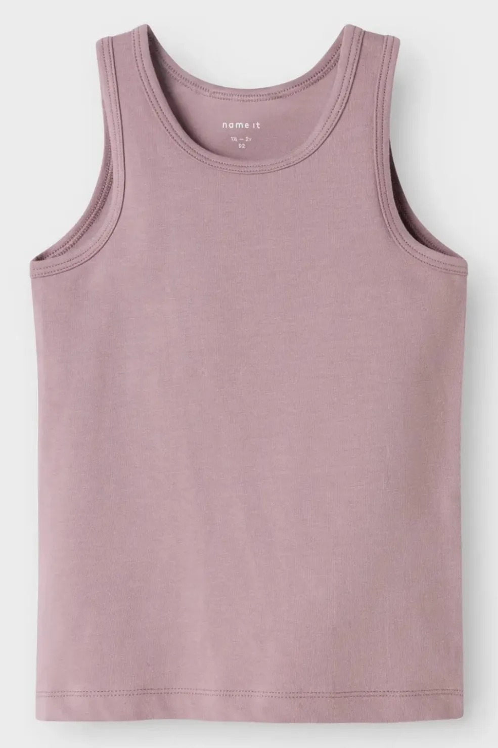 Lyserød tanktop med sløjfeprint fra Name It. Den ærmeløse top har en rund halsudskæring og er fremstillet i en blød jerseykvalitet med print af små sløjfer.