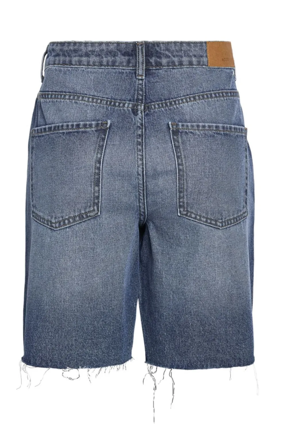 Løse shorts fra Noisy May i mellemblå denim. Shortsene har rå kanter forneden og et klassisk fem-lomme-design med almindelig taljehøjde.