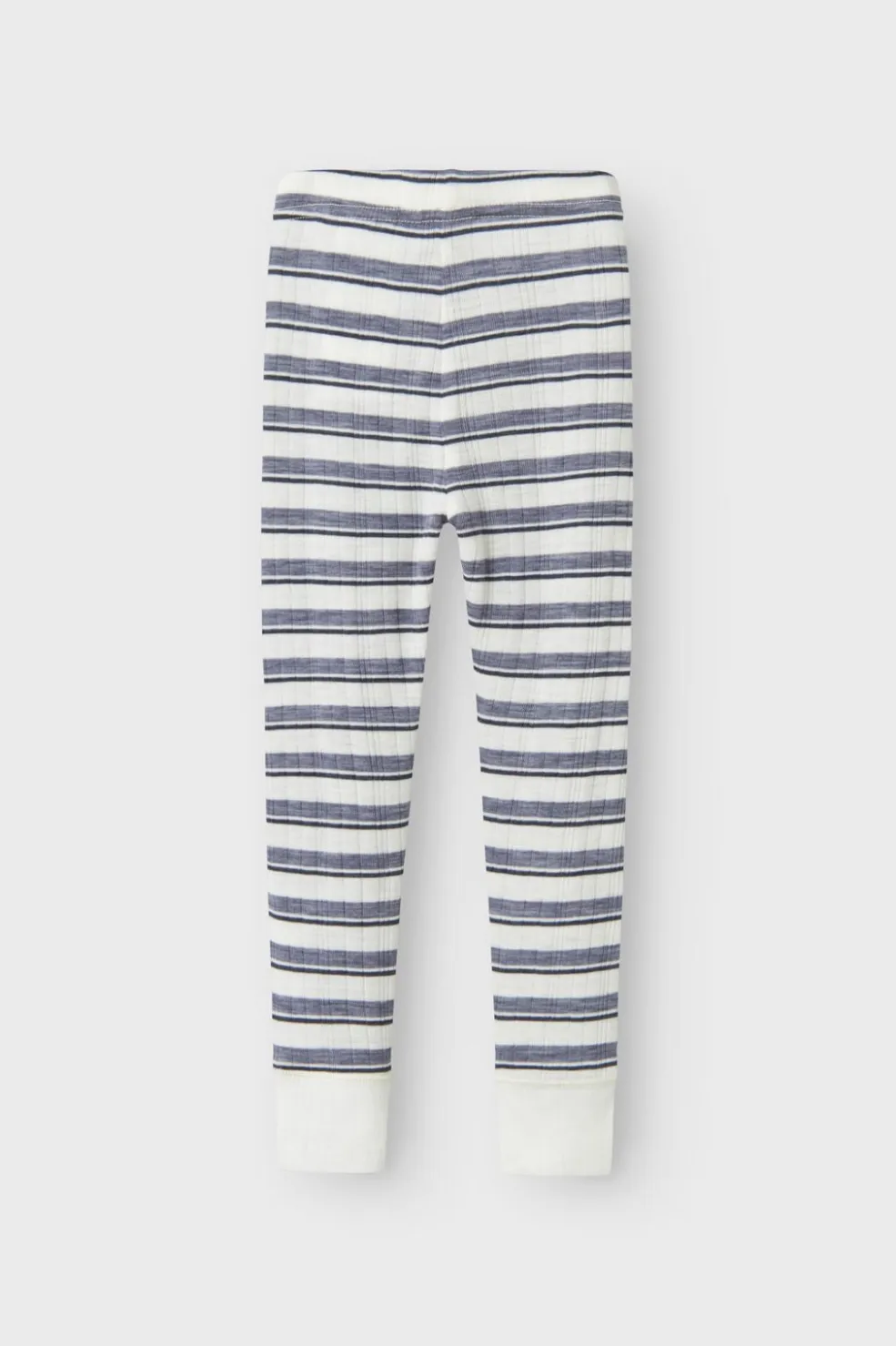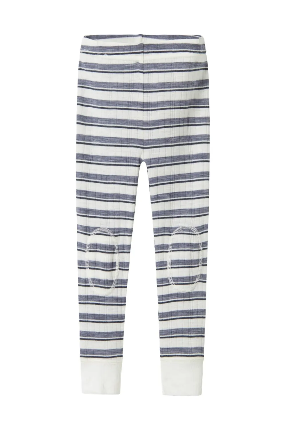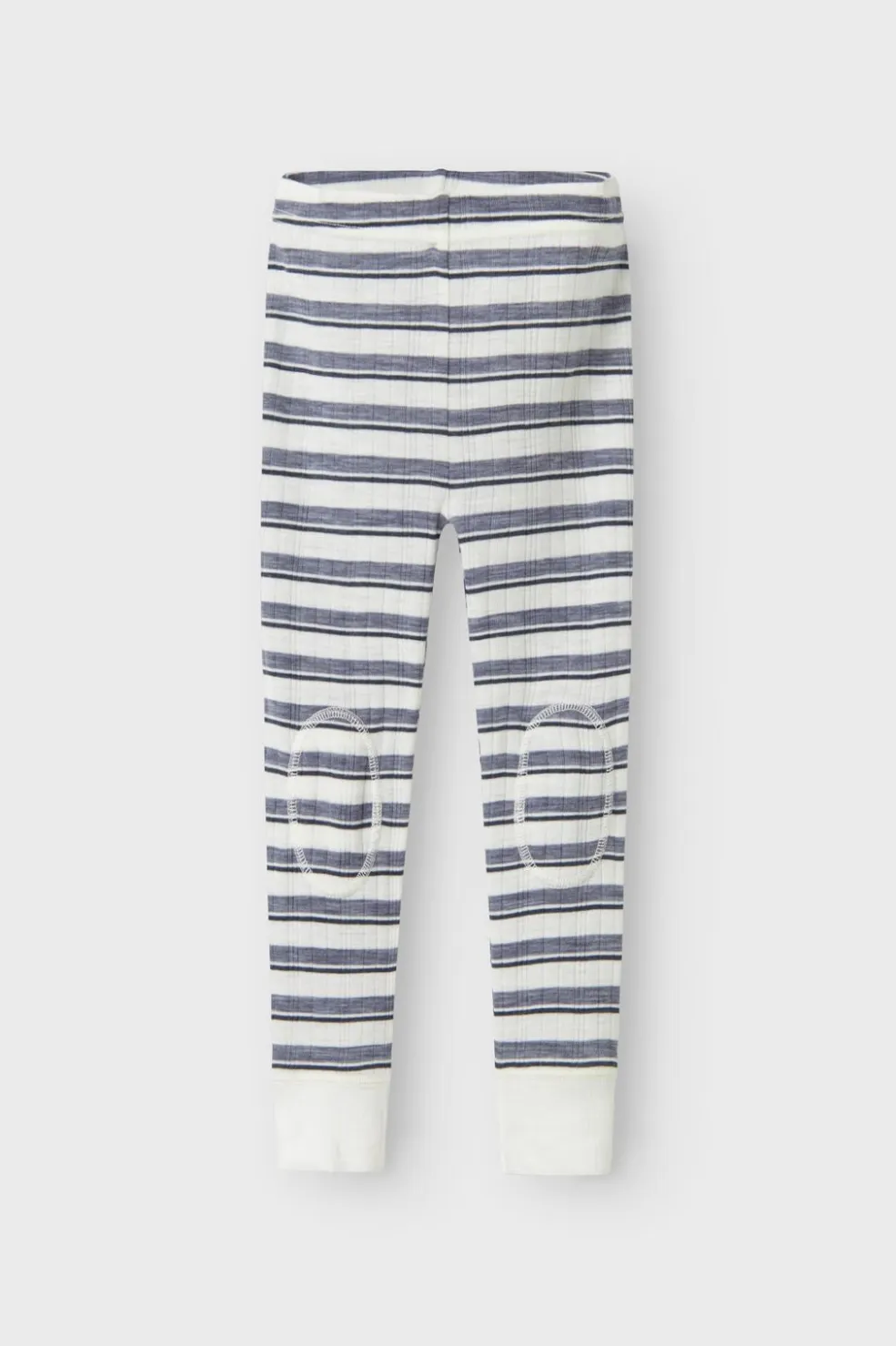 Lange underbukser fra Name It i grå og hvid. Fremstillet af blød merinould med stribemønster og praktiske knælapper. Den elastiske talje giver en god pasform.