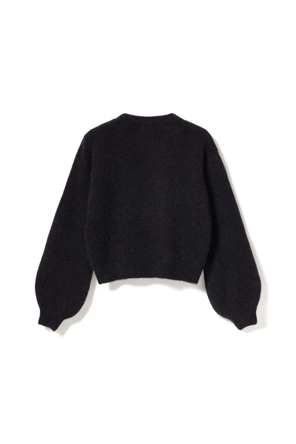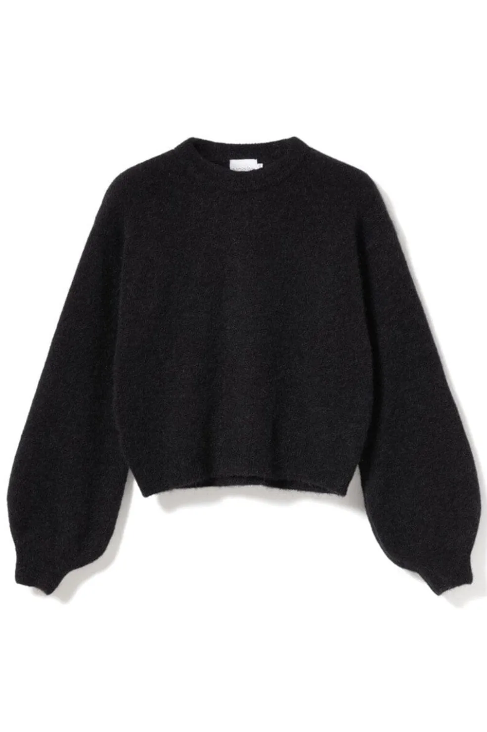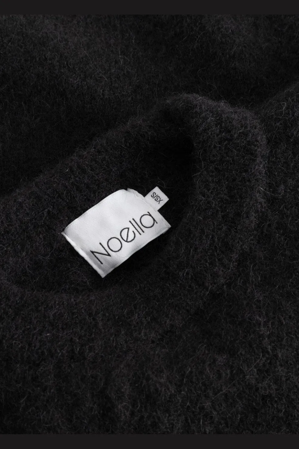 Sort striktrøje fra Noella med en blød og fluffy overflade. Designet med puffede ærmer og cropped længde til en moderne stil.