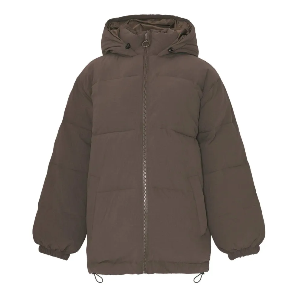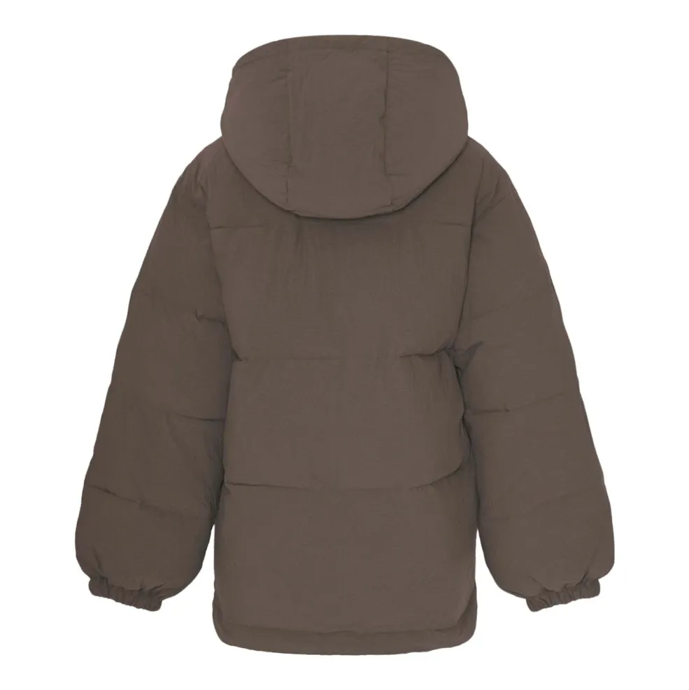 Quiltet pufferjakke fra Noella i en lysegrå nuance. Jakken har en hætte, frontlynlås og elastiske manchetter.