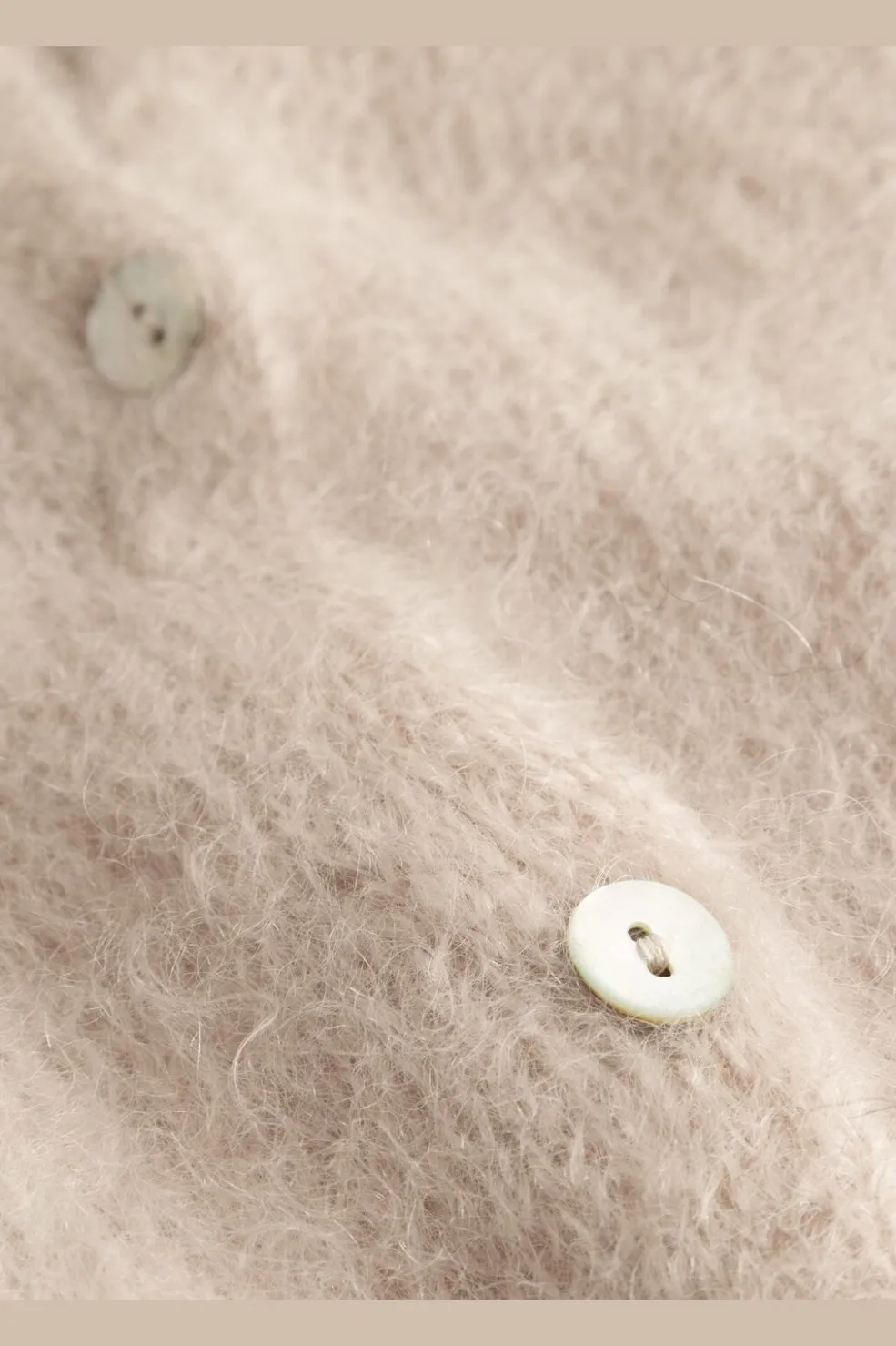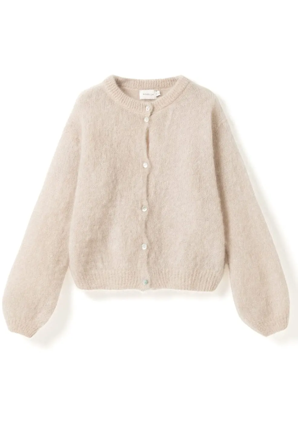 Mohair cardigan fra Noella i en lys off-white farve. Cardiganen har en fluffy overflade og en løs pasform.