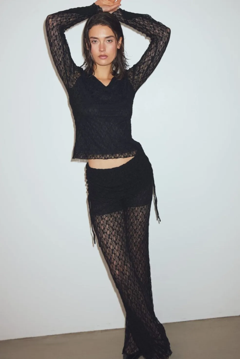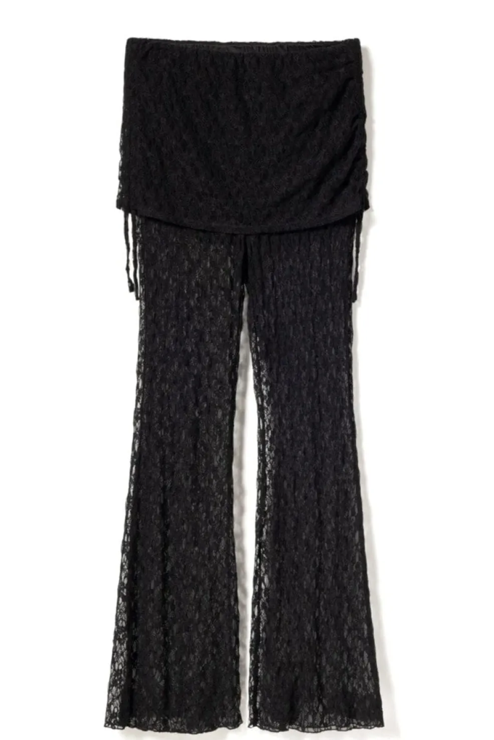 N-Lorena Pants er et par lange, vidtgående bukser i et indviklet blondemønster. Bukserne har en behagelig shortsforing og en foldet linning med justerbare snørebånd i blonde for en rynket effekt.