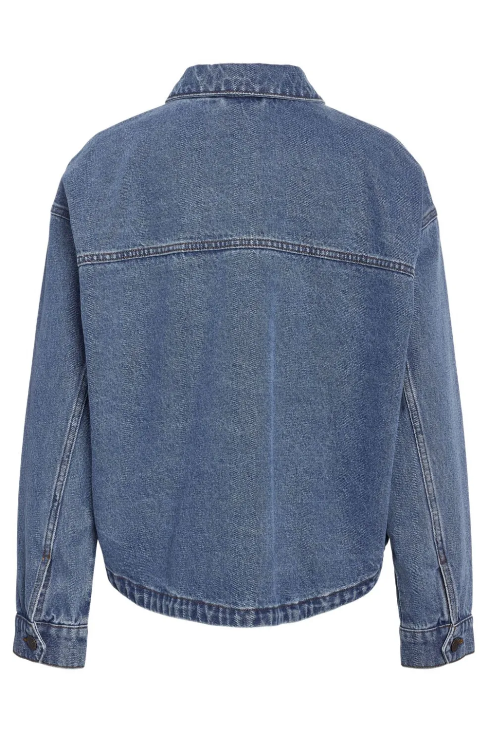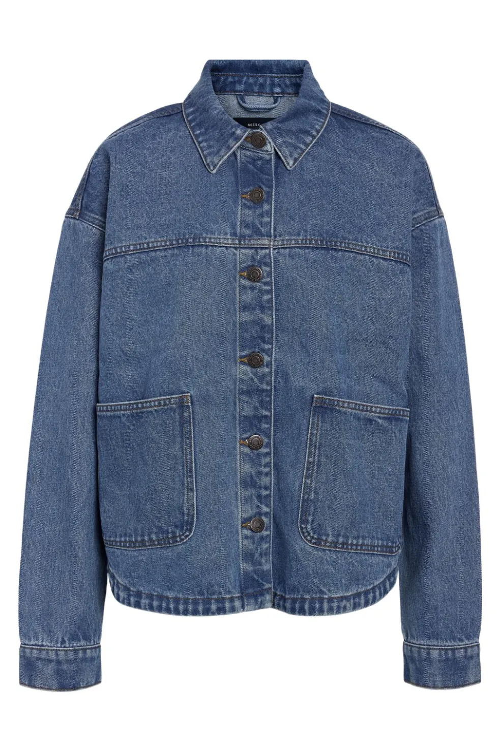Denimjakke fra Noisy May i mellemblå bomuld. Jakken har klassisk krave, knaplukning foran og to store frontlommer.