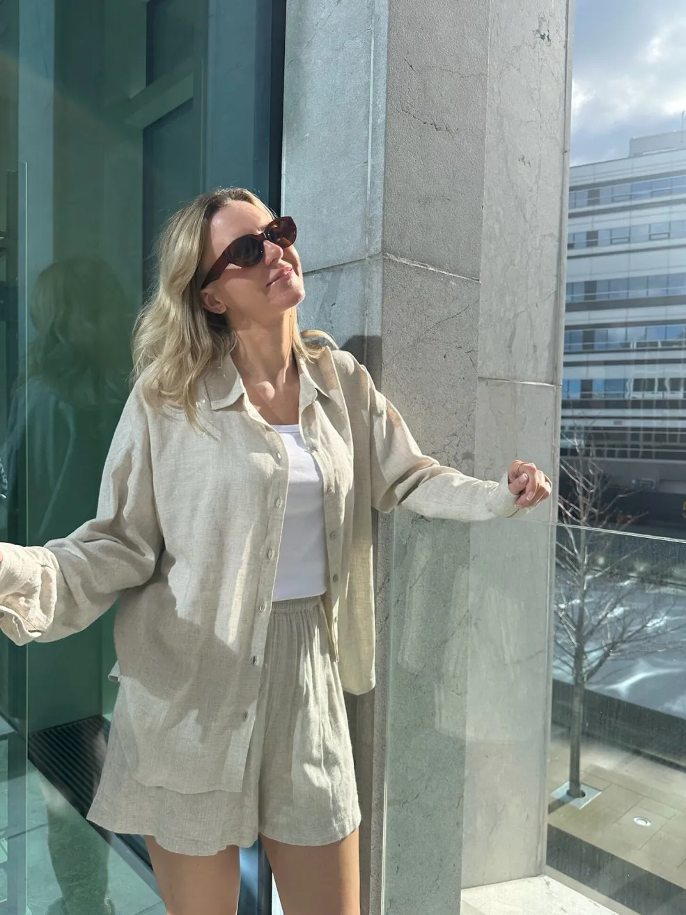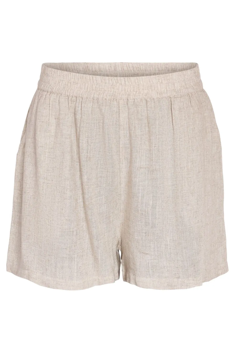 Shorts fra Noisy May i en lys beige farve. Shortsene er lavet af viskose og hør med en løs pasform.