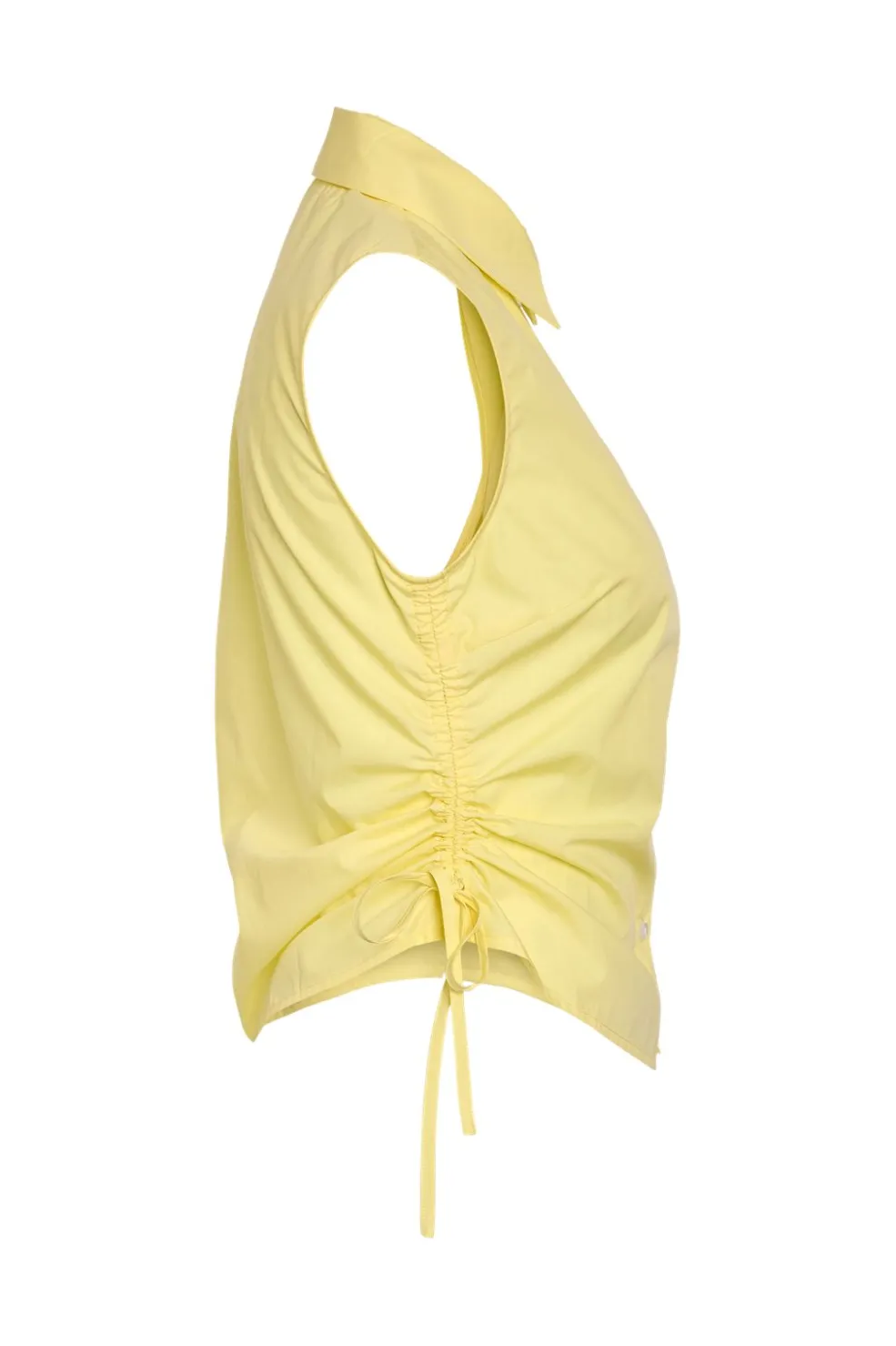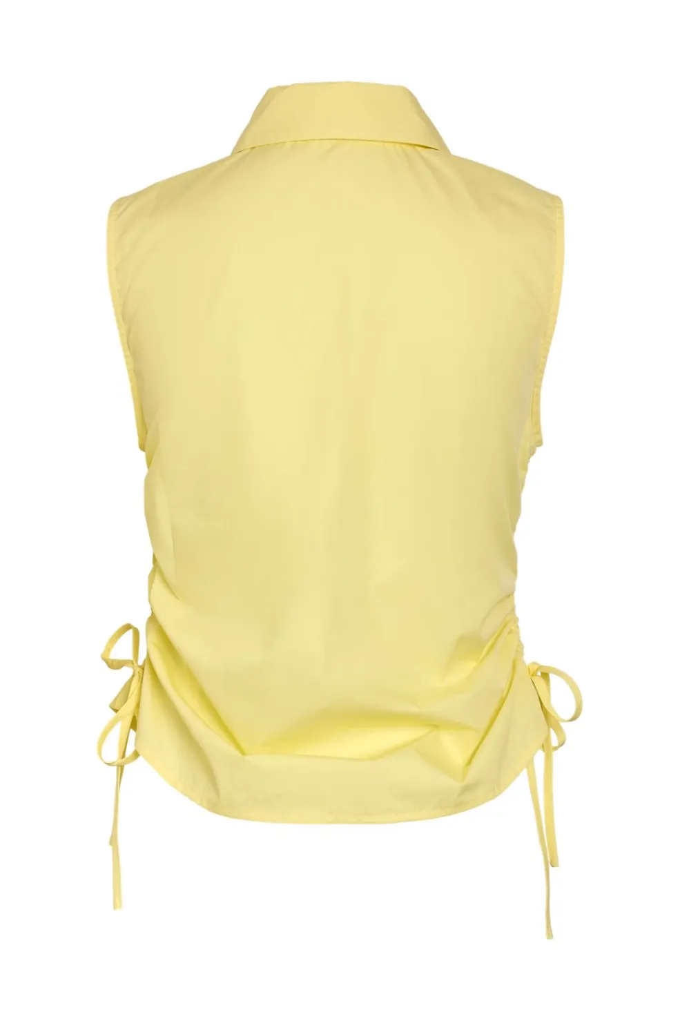 En ærmeløs skjorte fra Noisy May i en lys gul nuance. Skjorten har knaplukning foran og justerbare bånd i siderne.
