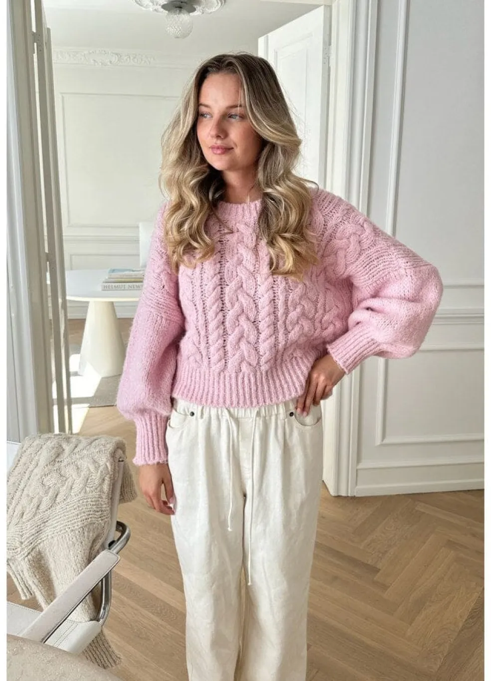 Smuk sweater med de fineste detaljer. Flettet mønster gennem hele strikken. True to size.