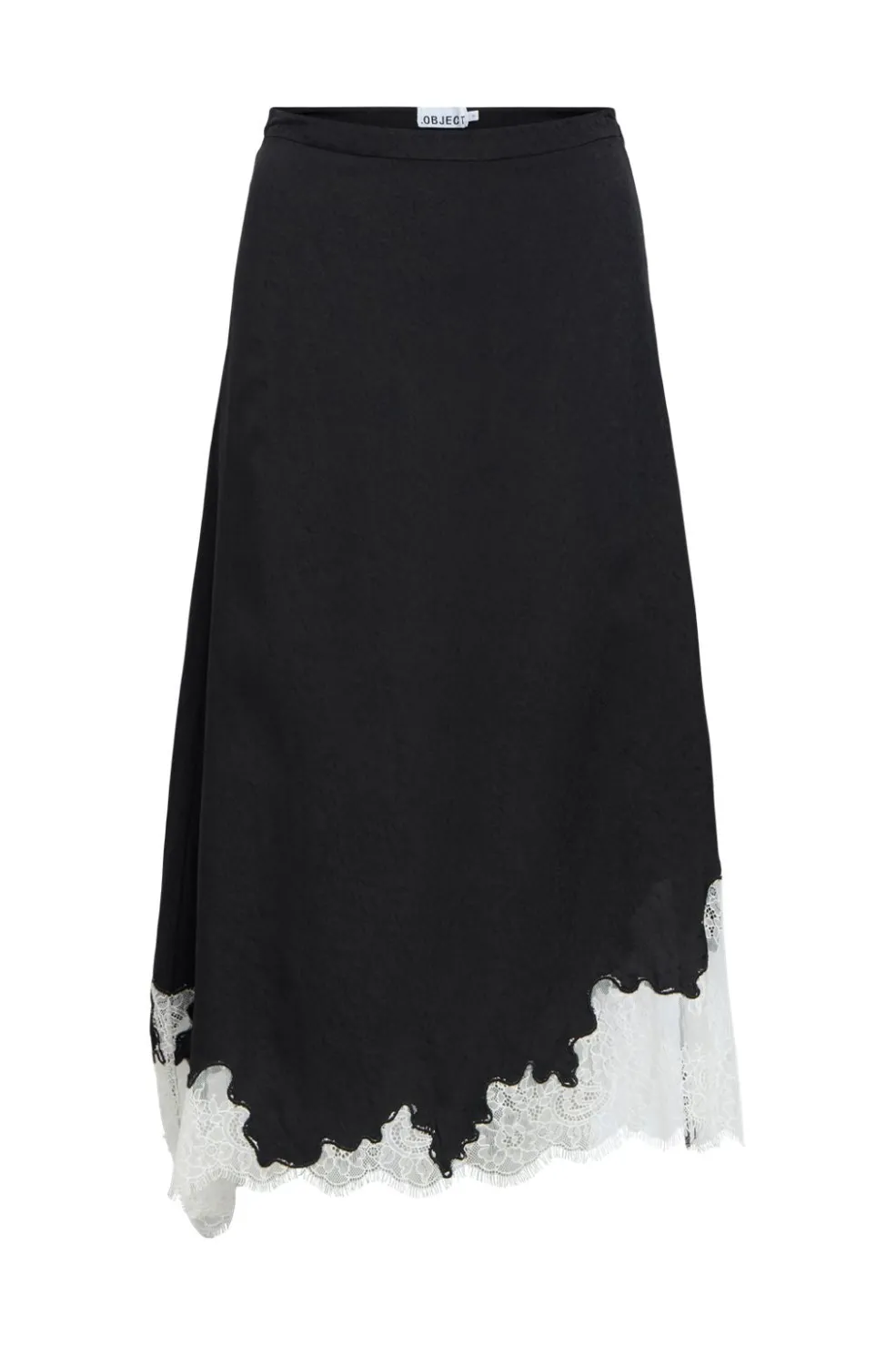 Lang nederdel fra Object i sort med hvid blondekant nederst. Nederdelen har et A-formet snit og går til midt på læggen.