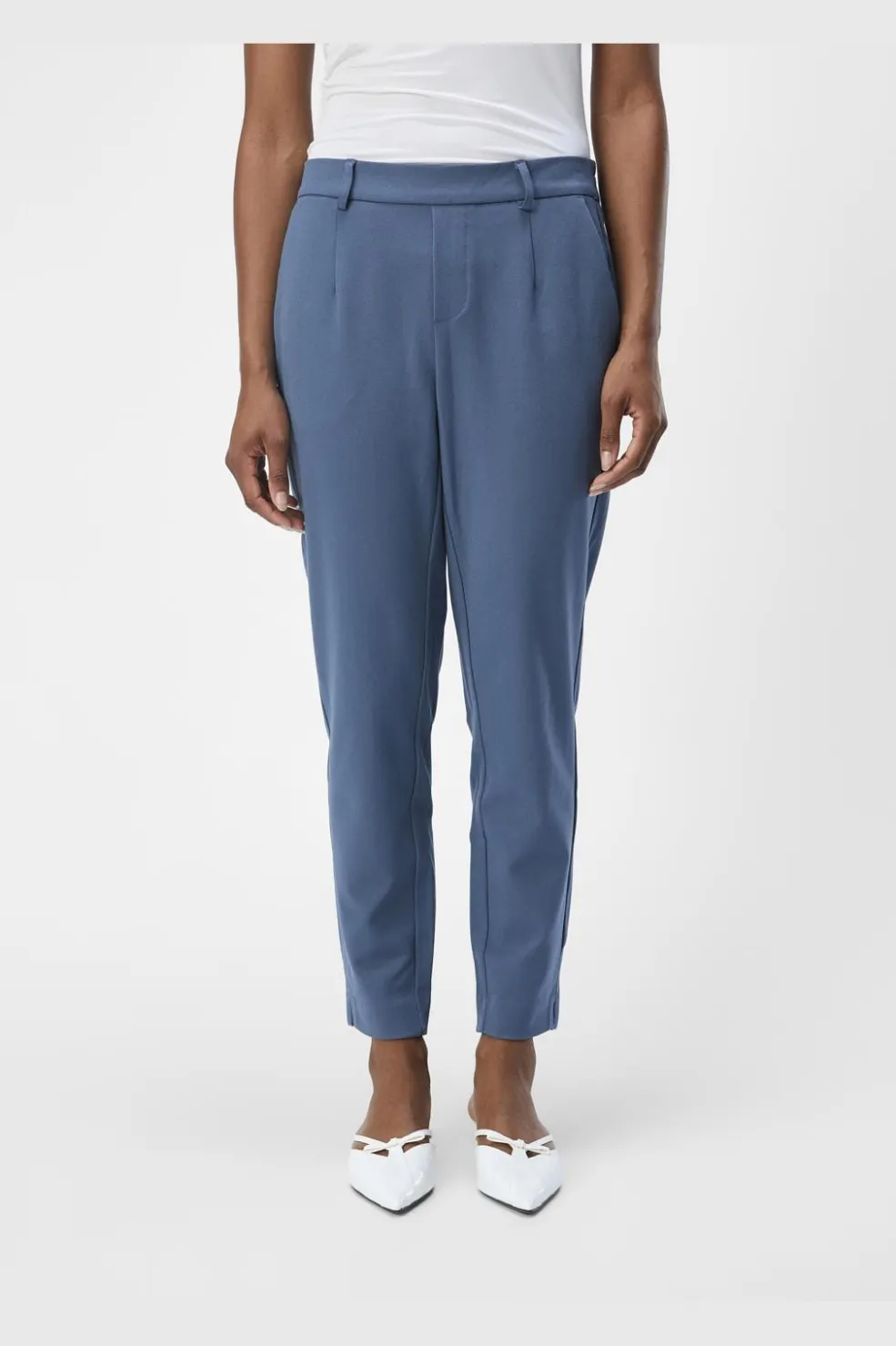 Blå bukser fra Object i vævet materiale. Bukserne har en straight fit-pasform og ankellængde med elastik i taljen.