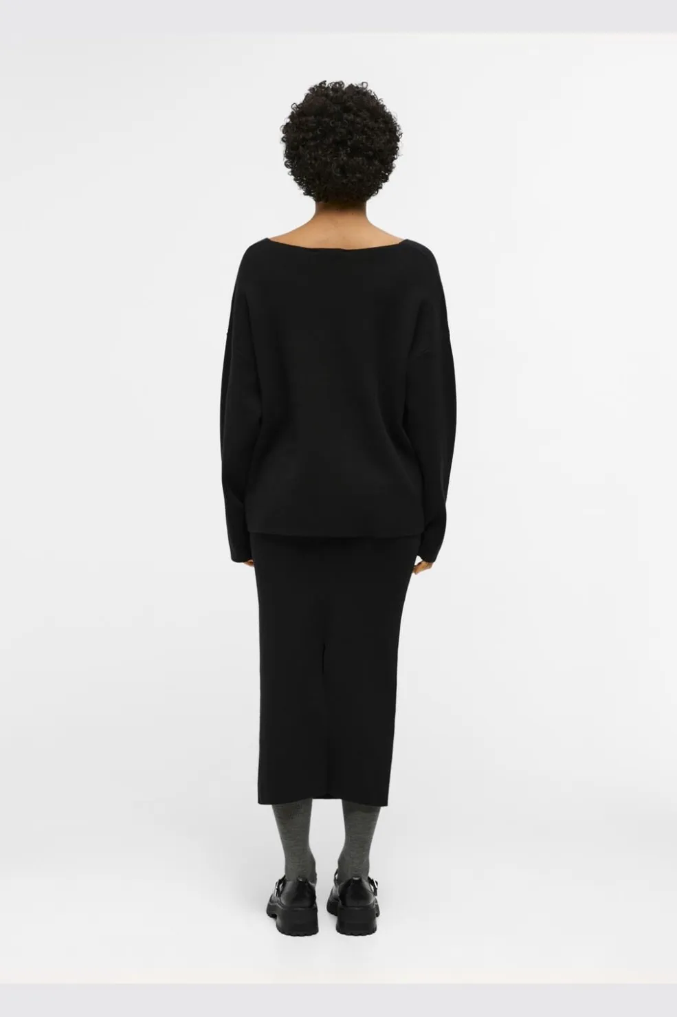 Sort striktrøje fra Object med V-hals og netmønstret strik. Trøjen har en regular fit og lange ærmer. Netmønsteret giver strikken gode strækegenskaber.