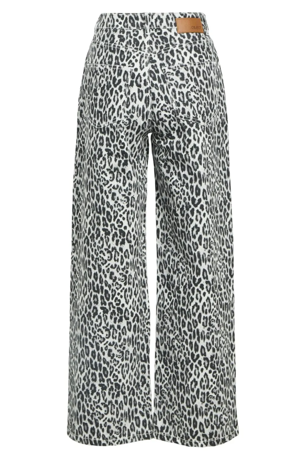 Jeans fra Object med leopardprint i grå og sort melange. De har en høj talje og straight fit med for- og baglommer i klassisk denim-design.