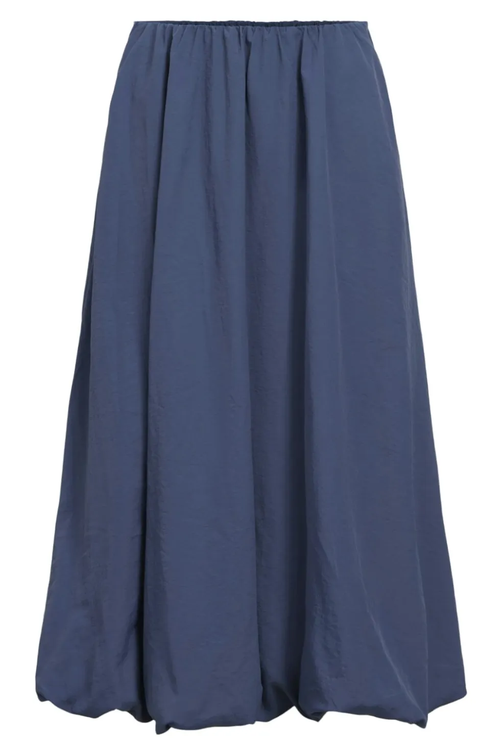 Ballon-nederdel fra Object i mørk denim. Den har en rynket talje og en fyldig silhuet med rynkedetaljer, der skaber en karakteristisk ballonform.