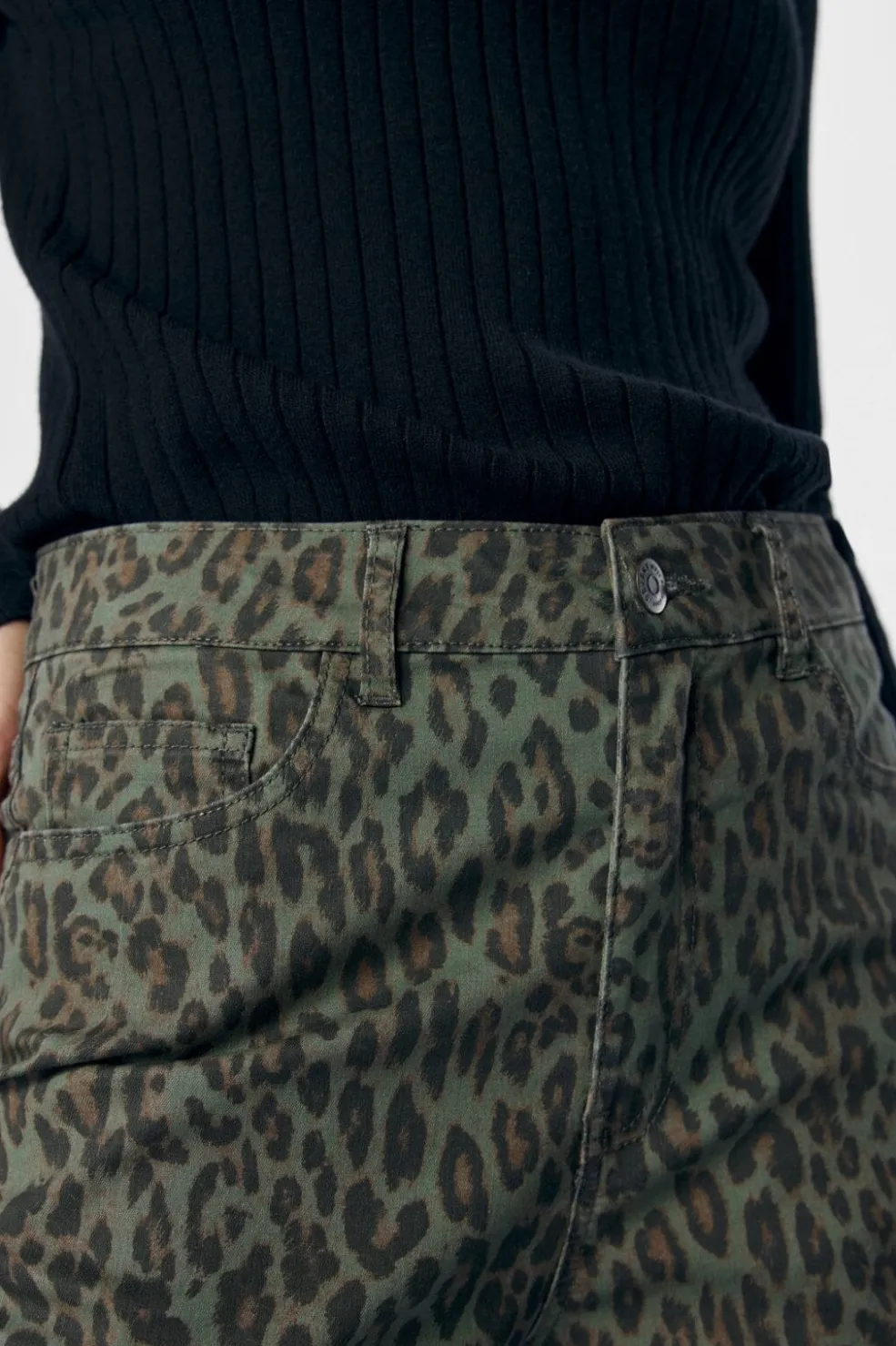Armygrønne jeans fra Object med leopardprint over hele overfladen. De har en høj talje og straight fit, der giver en klassisk silhuet.