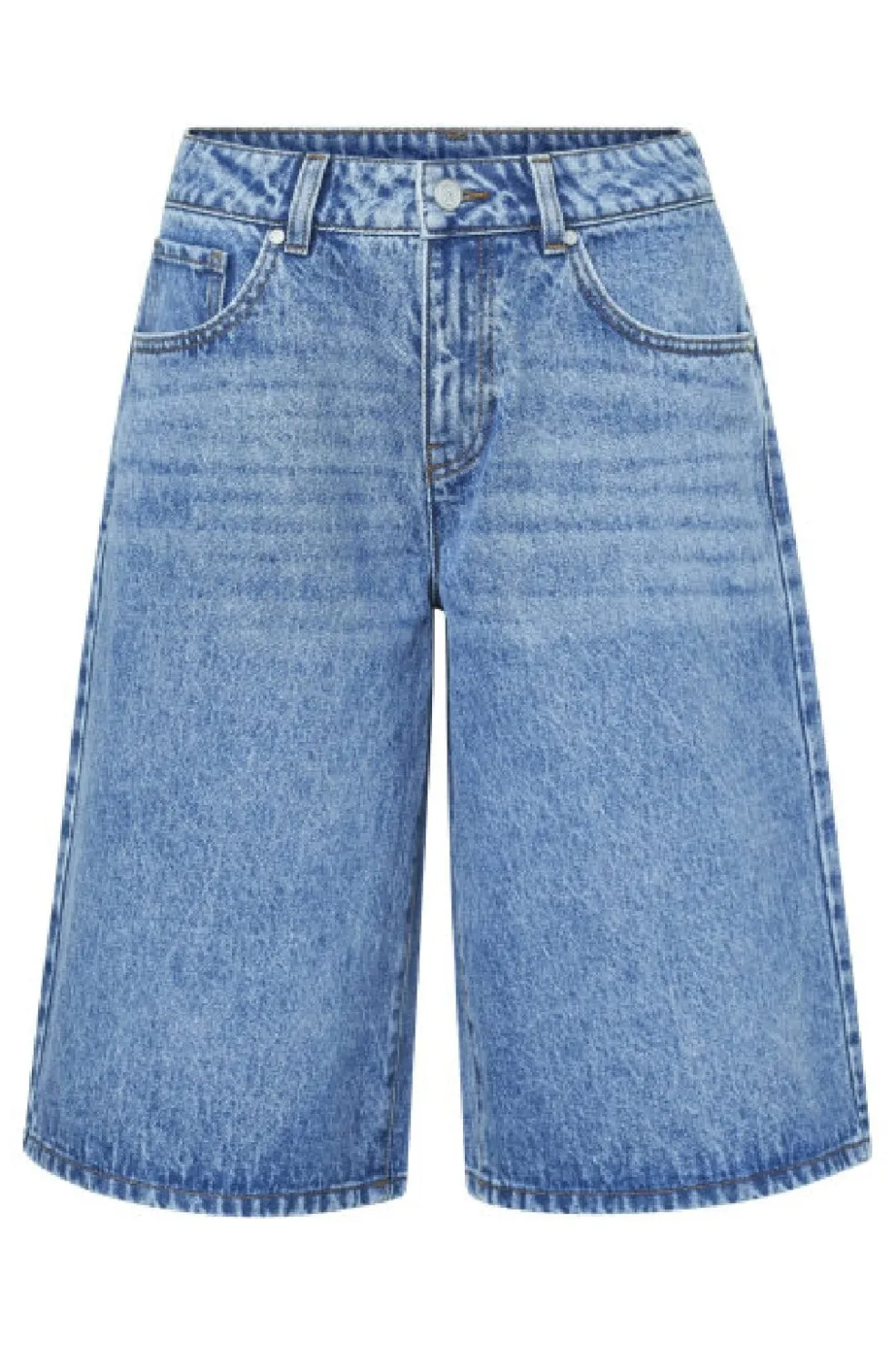 Lysblå denimshorts fra Sisters Point med loose fit og knælængde. Shortsene har en mellemhøj talje og er fremstillet i klassisk denim med fem praktiske lommer.