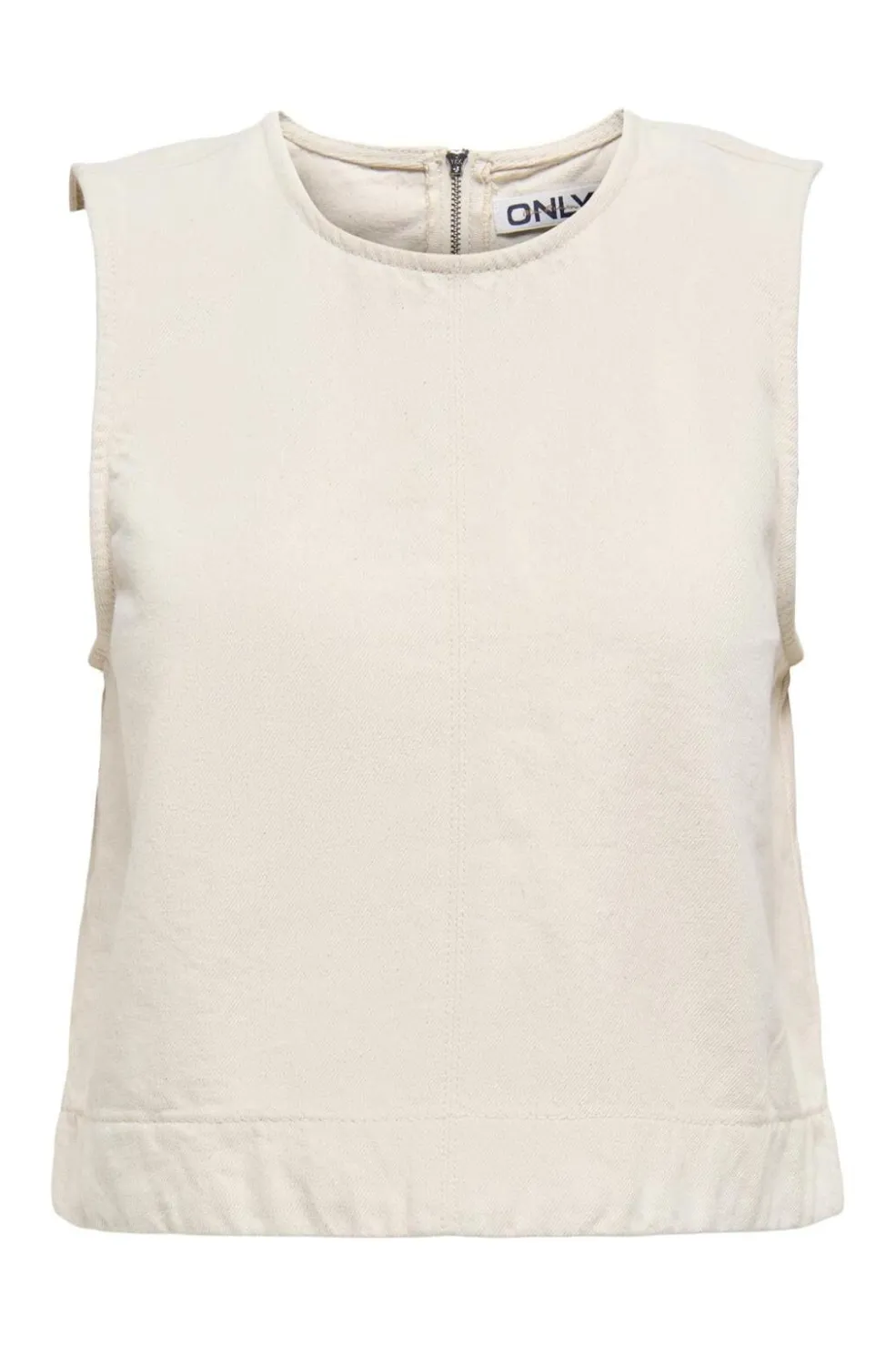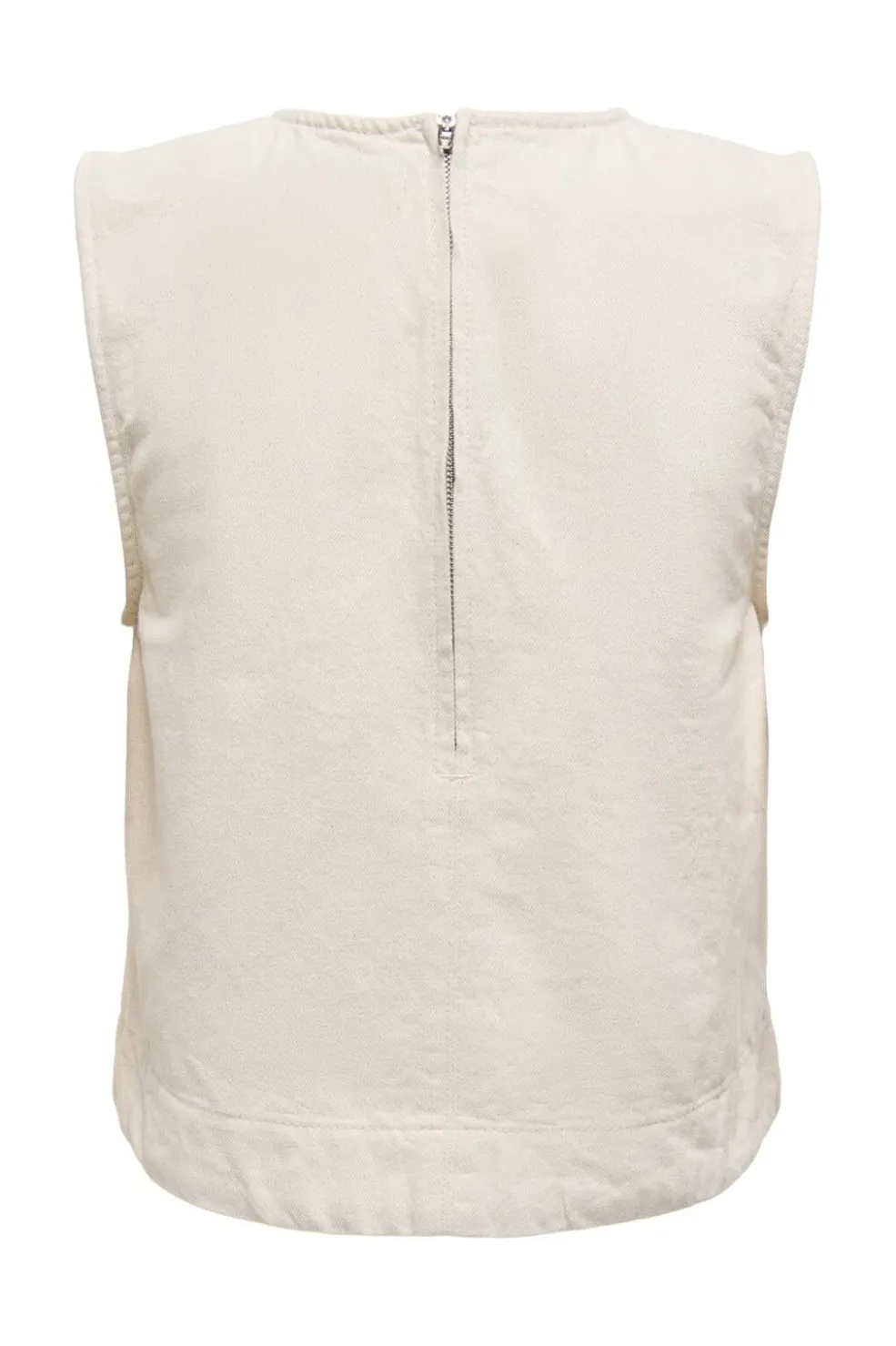 Ærmeløs top fra Only i ecru. Den lyse bomuldstop har rund halsudskæring og lynlåslukning i nakken. Toppen har et enkelt design med regular pasform.