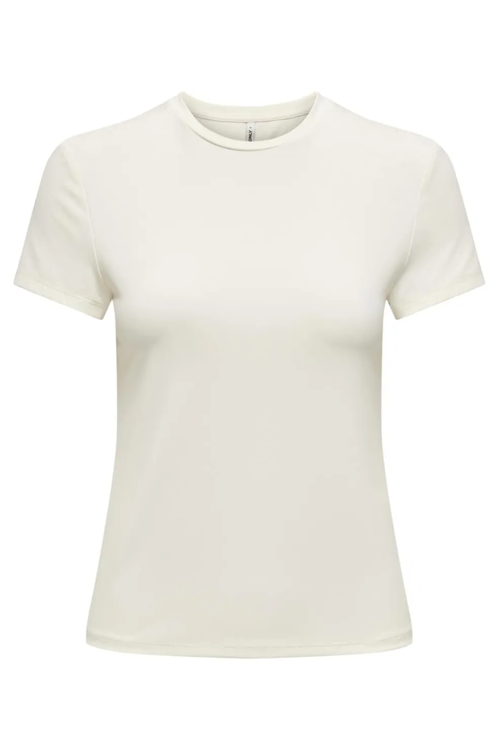 Kortærmet top fra Only i en cremehvid Cloud Dancer-farve. Toppen har en rund hals og en regular pasform, der giver god bevægelsesfrihed.