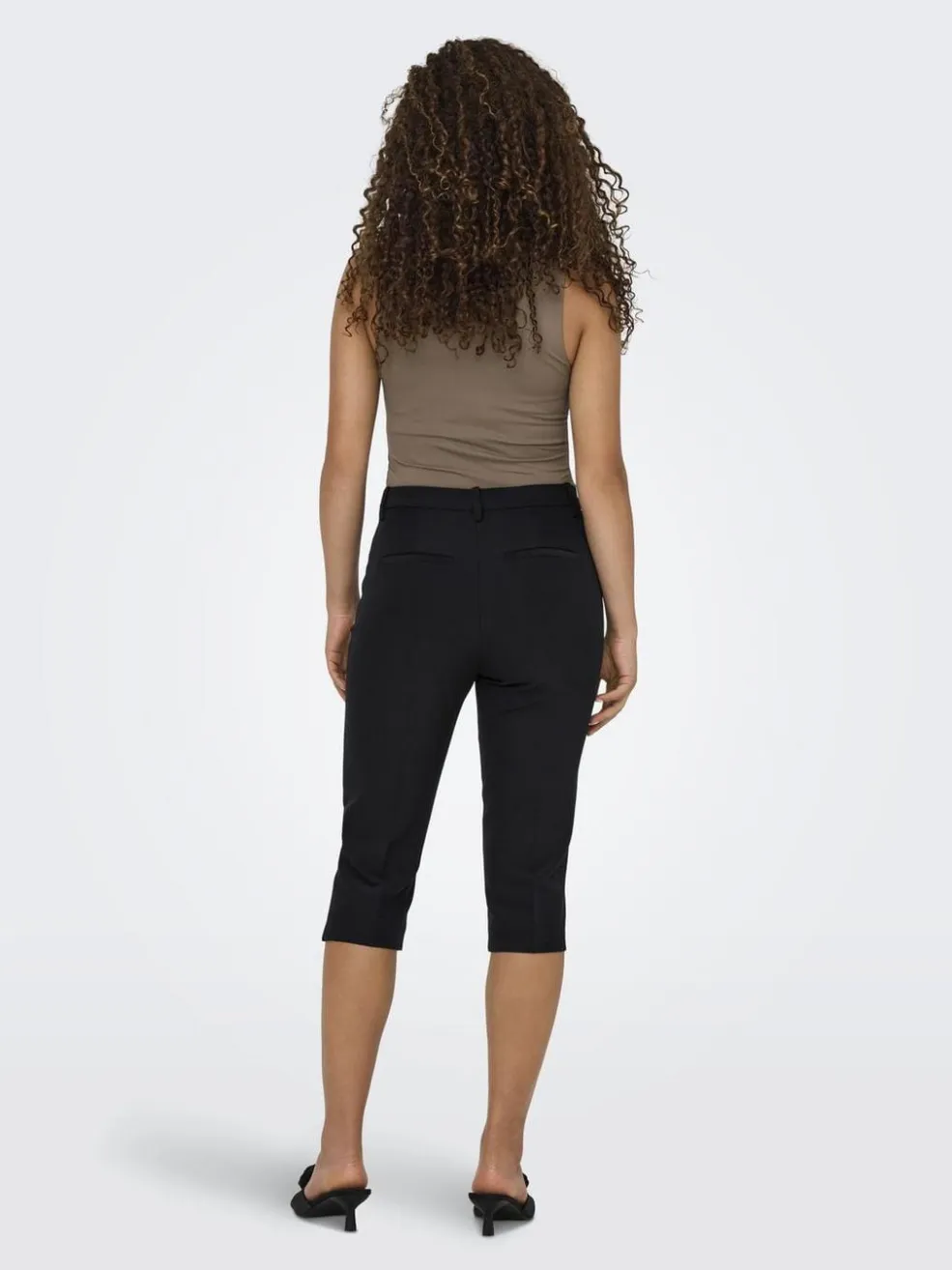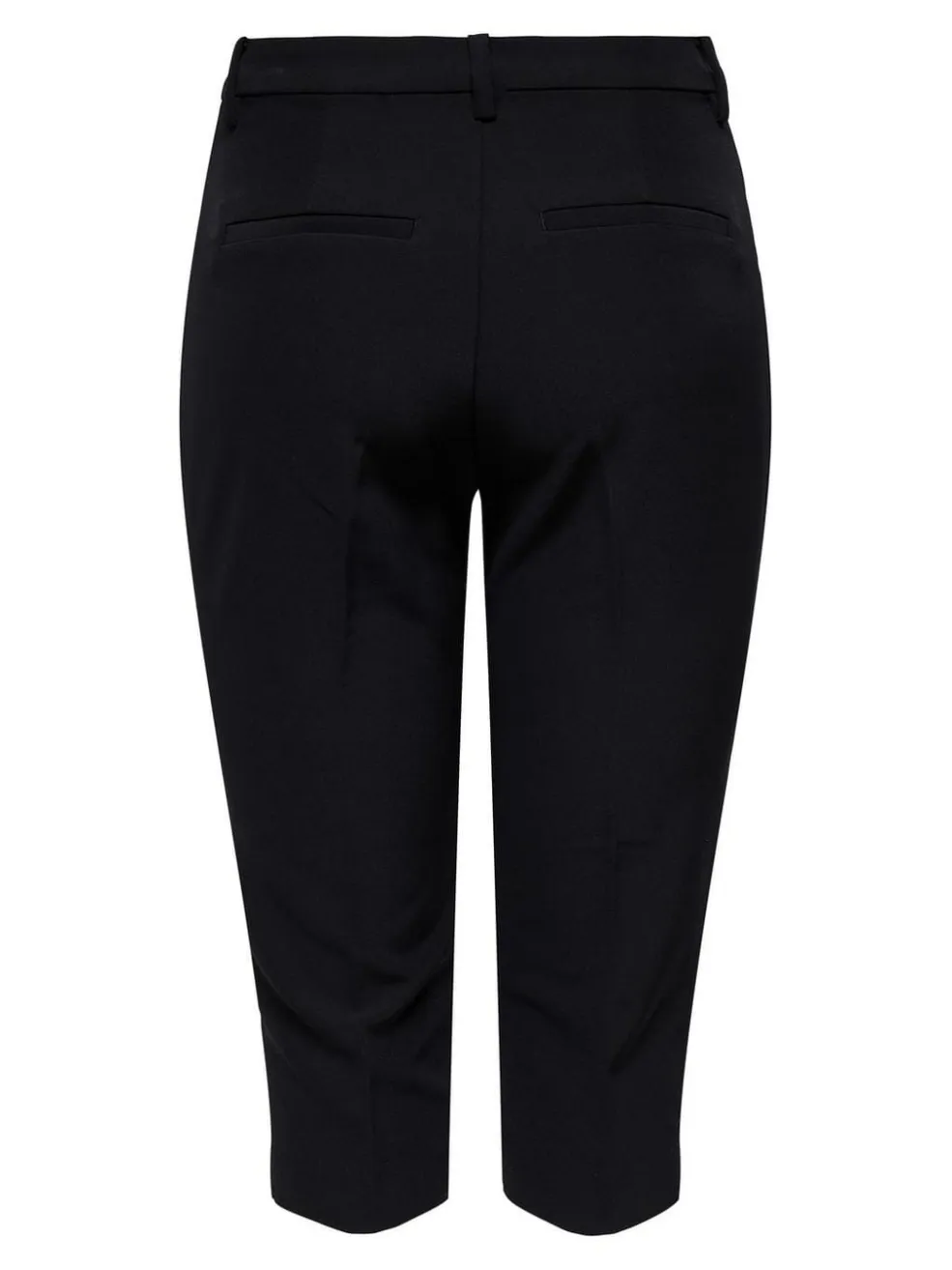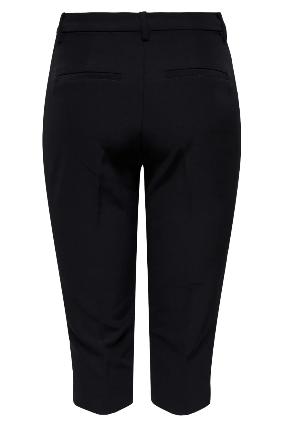 Sorte capri-bukser fra Only med slim fit og mellemhøj talje. Bukserne har en knælang model med bæltestropper samt lynlås- og knaplukning i gylpen.