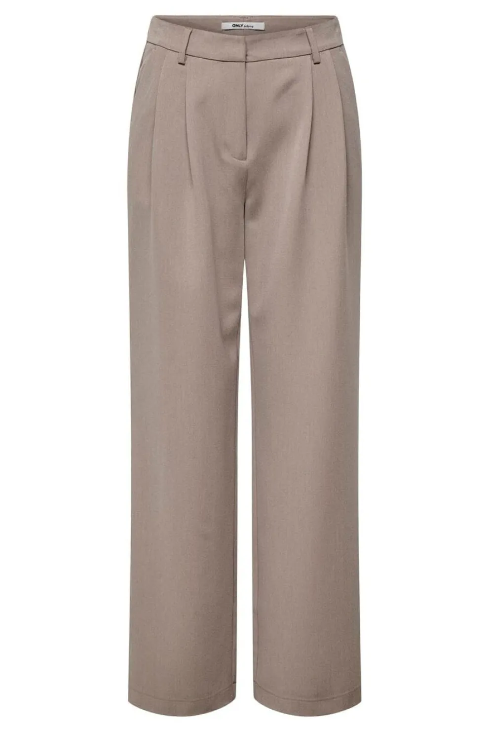 Bukser fra Only i en meleret gråbrun nuance. Bukserne har brede ben og læg ved taljen.