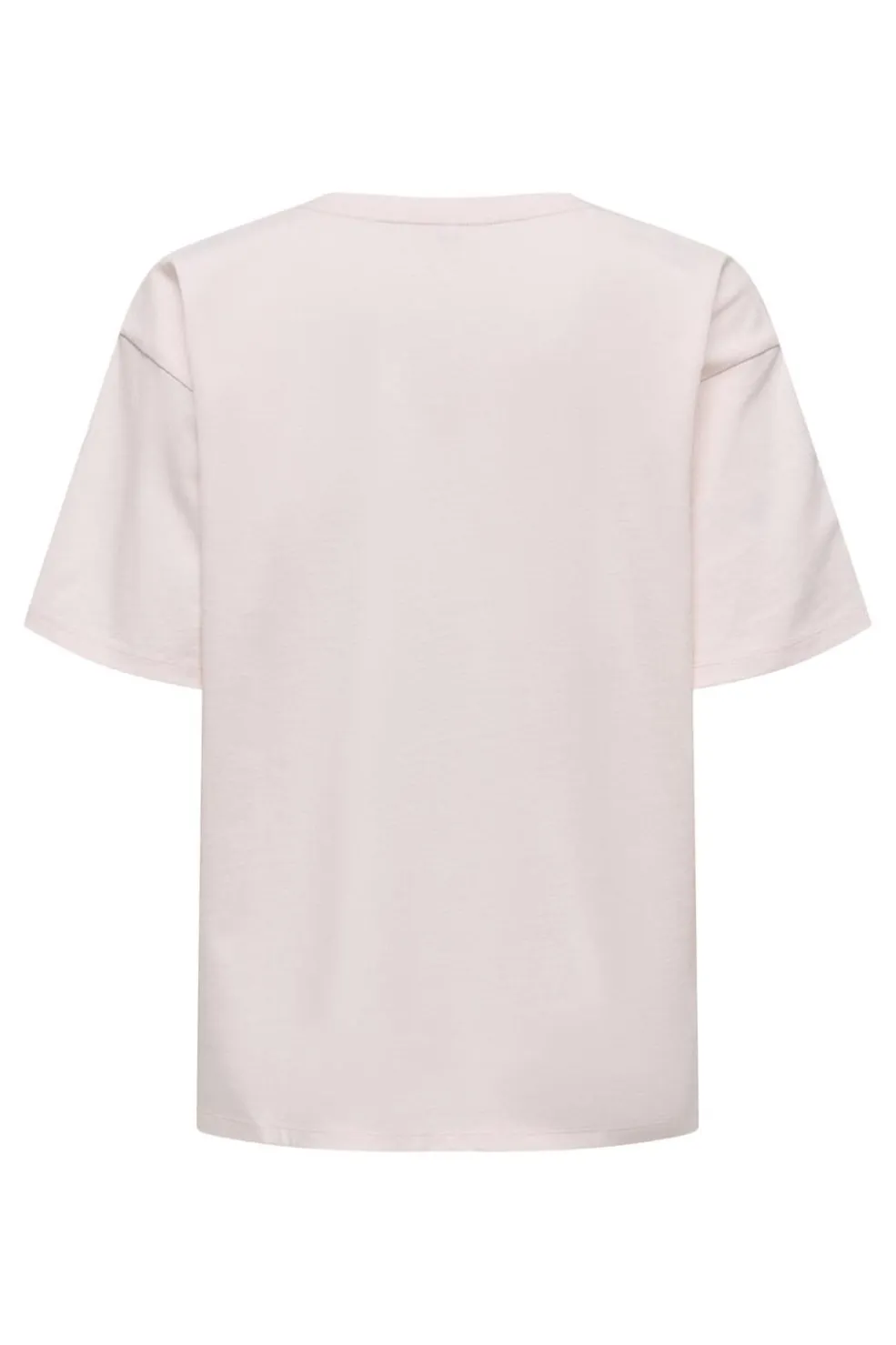 T-shirt fra Only i isende pink med blomstermotiver og bystempler. Den runde halsudskæring og de korte ærmer giver en klassisk t-shirt-silhuet med sænkede skuldersømme.