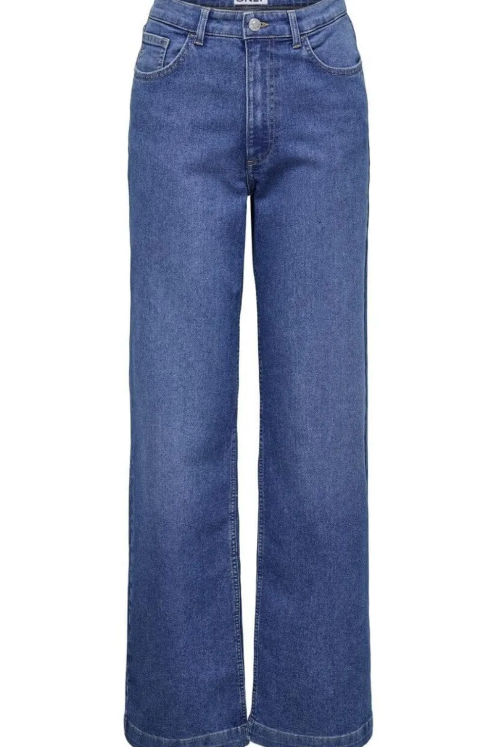 Brede jeans fra Only i mellemblå denim. Den høje talje og det brede ben-design giver jeansene et afslappet udtryk. Lynlås og knapper foran.