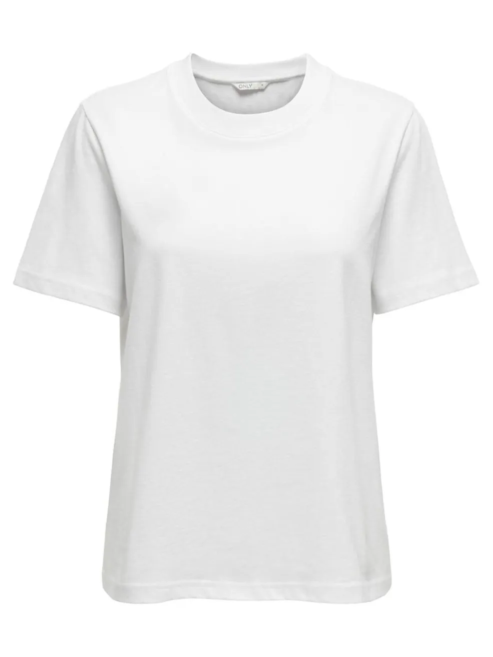 Hvid t-shirt fra Only med rund halsudskæring og korte ærmer. Den er fremstillet i en blød bomuldskvalitet og har en regular fit-pasform.