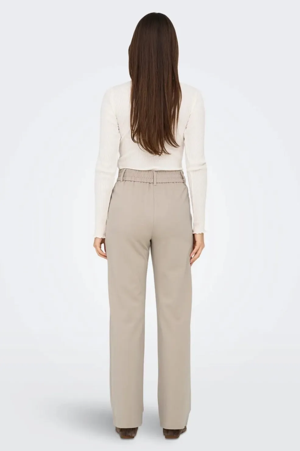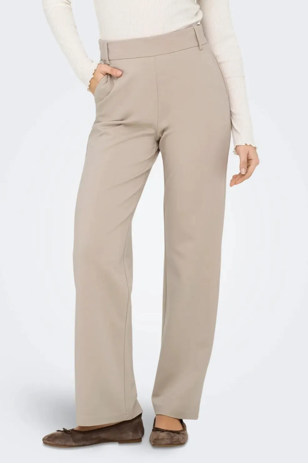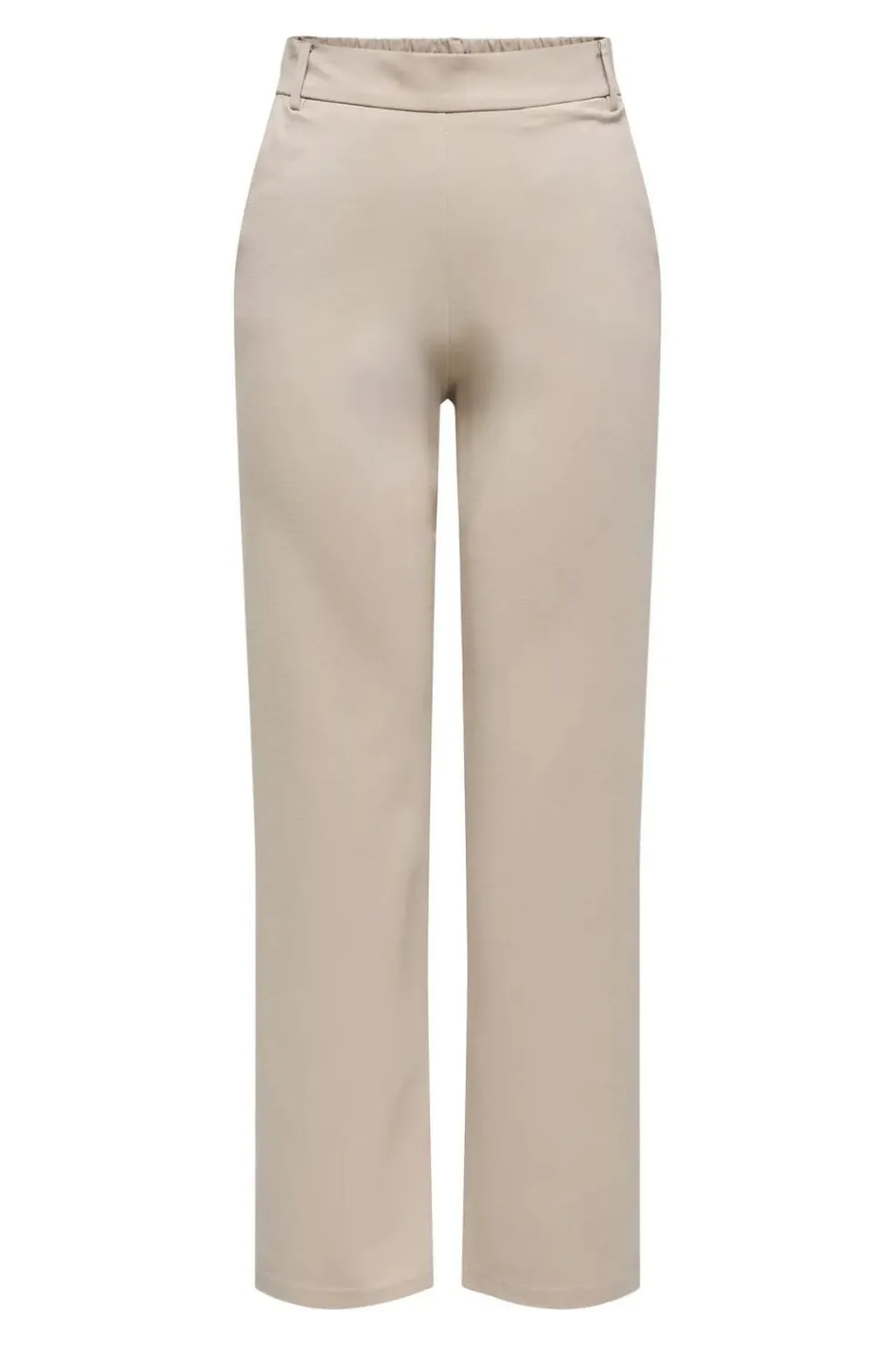 Beige bukser fra Only med lige ben og mellemhøj talje. Bukserne har en bred linning med bæltestropper og sidelommer. Den lige pasform giver et rent og enkelt udtryk.