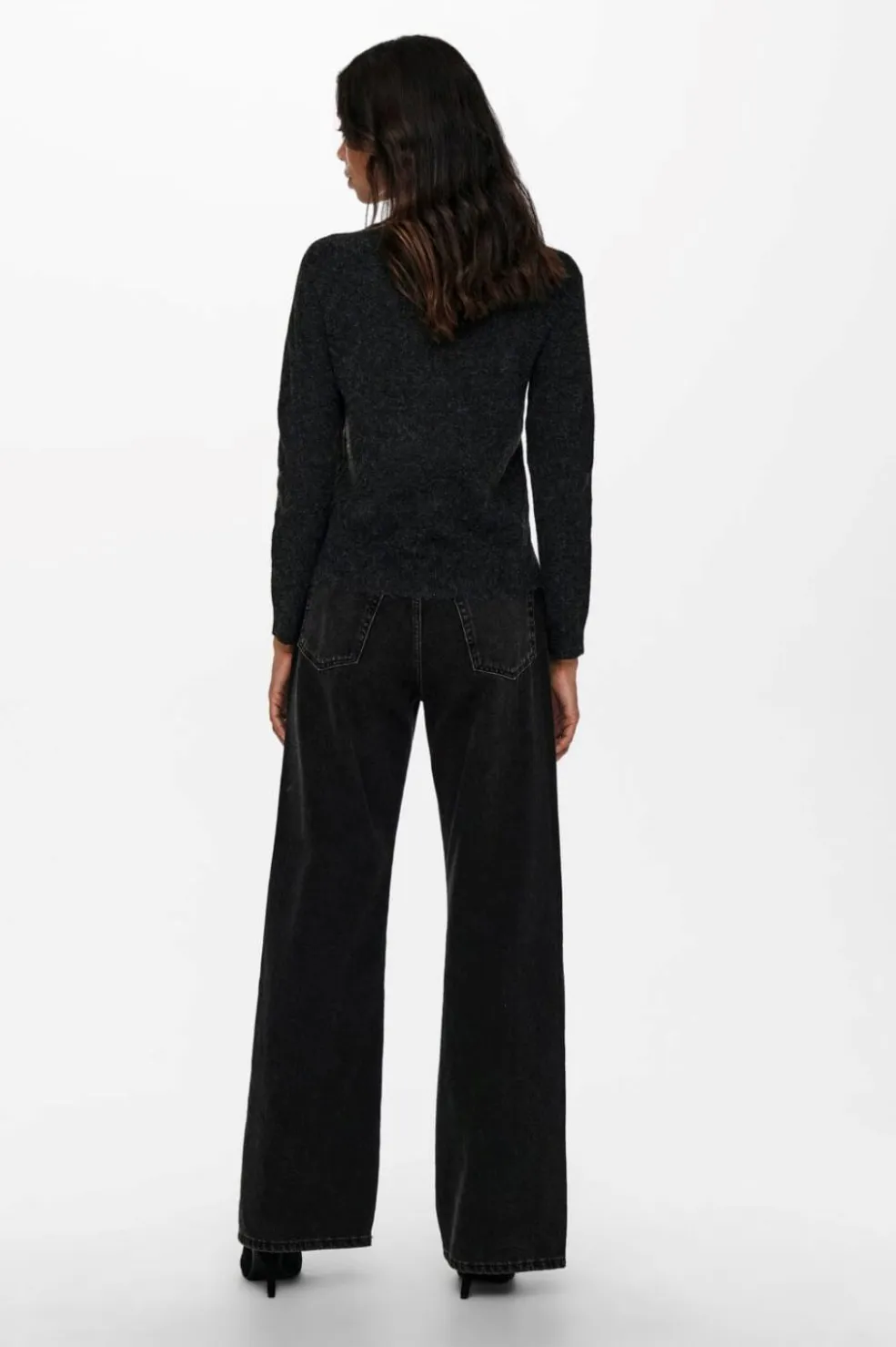 Sort meleret strikbluse med lange ærmer og rund halsudskæring. Den regulære pasform giver god bevægelsesfrihed, mens det melerede udtryk skaber dybde i designet.