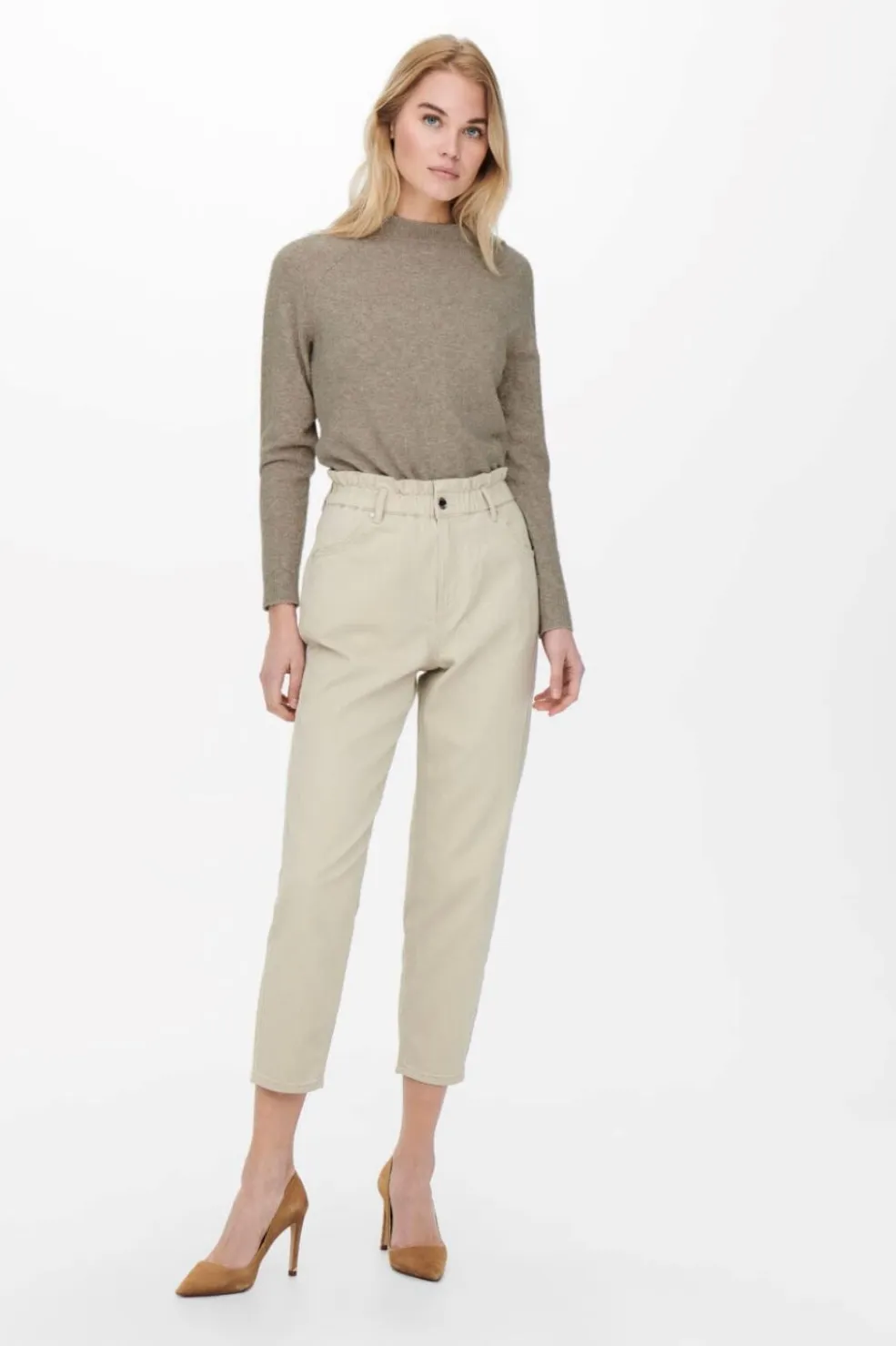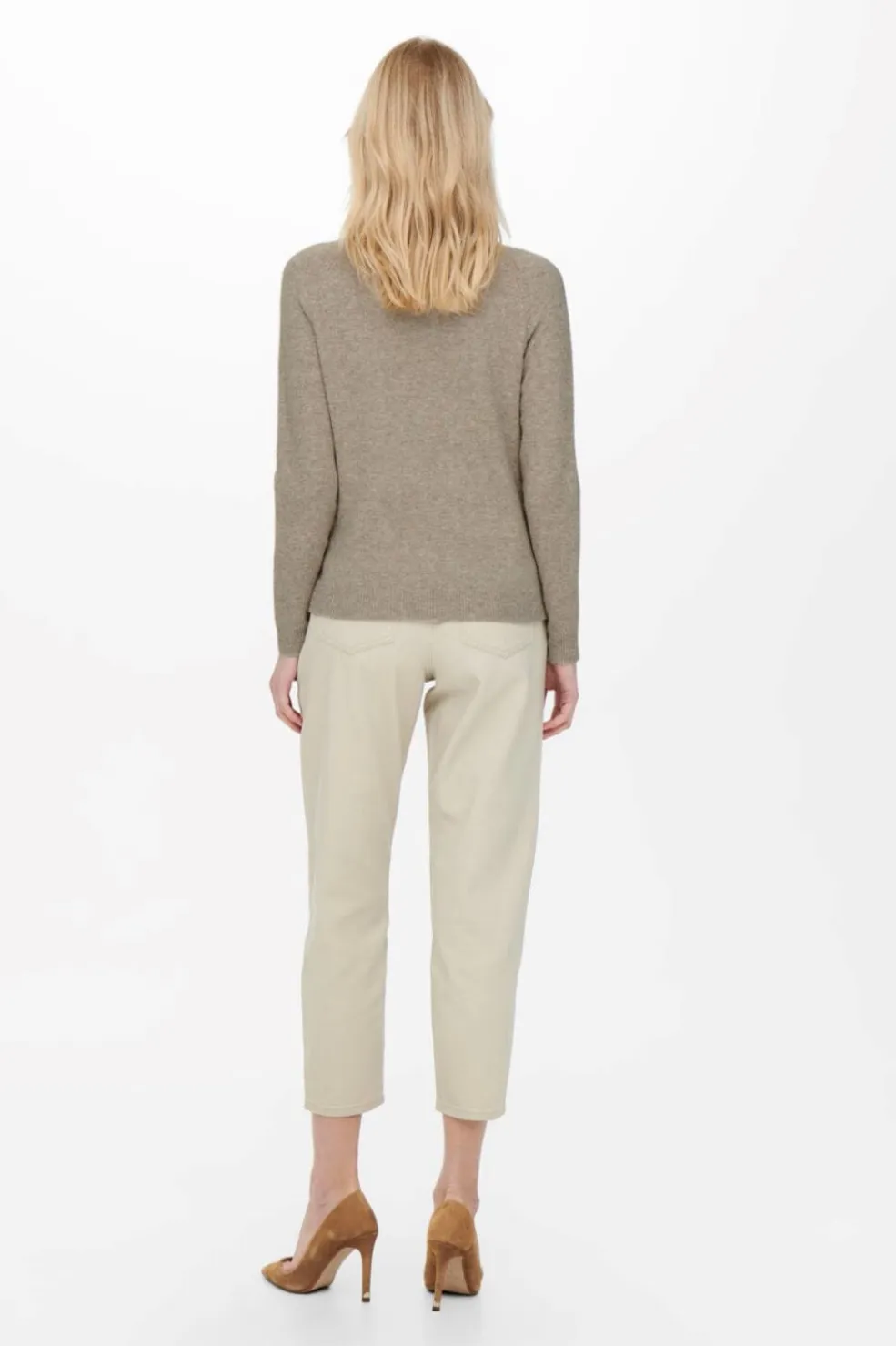 Beige strikpullover fra Only med melangeeffekt. Den har en rund halsudskæring og lange ærmer. En strik med regular fit og et casual udtryk.