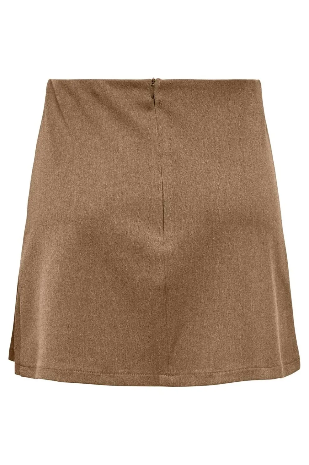 Plisseret nederdel fra Only i en beige-brun farve. Nederdelen har en A-formet silhuet med lægdetaljer og er lavet af vævet materiale.