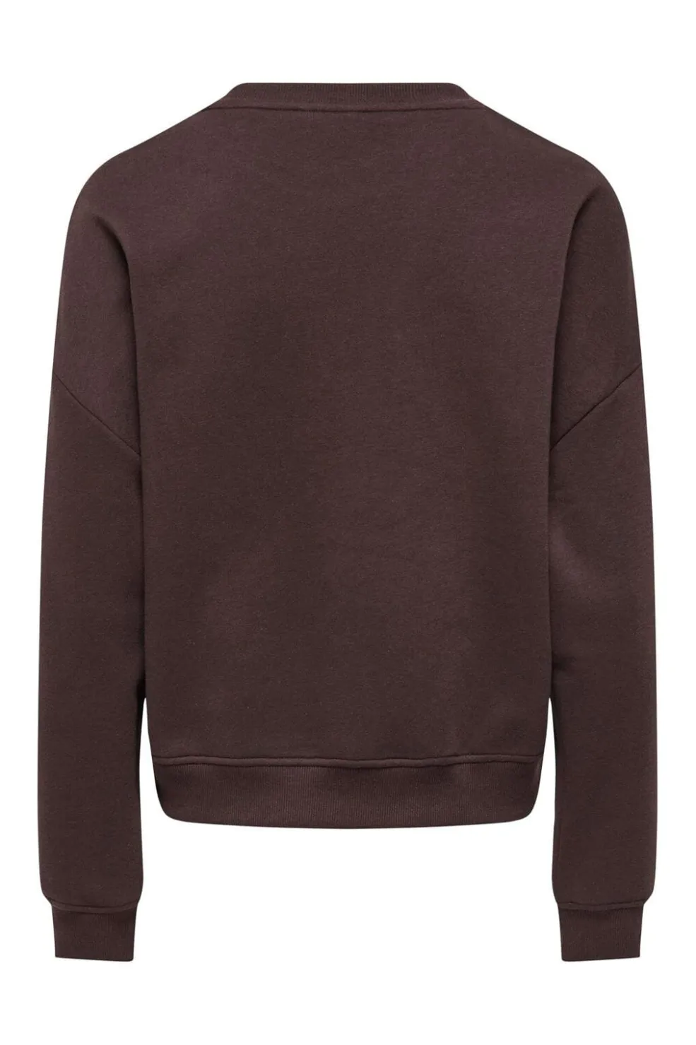 En brun sweatshirt fra Only med oversize-design og rund hals. Lavet af 60 % bomuld og 40 % genanvendt polyester.