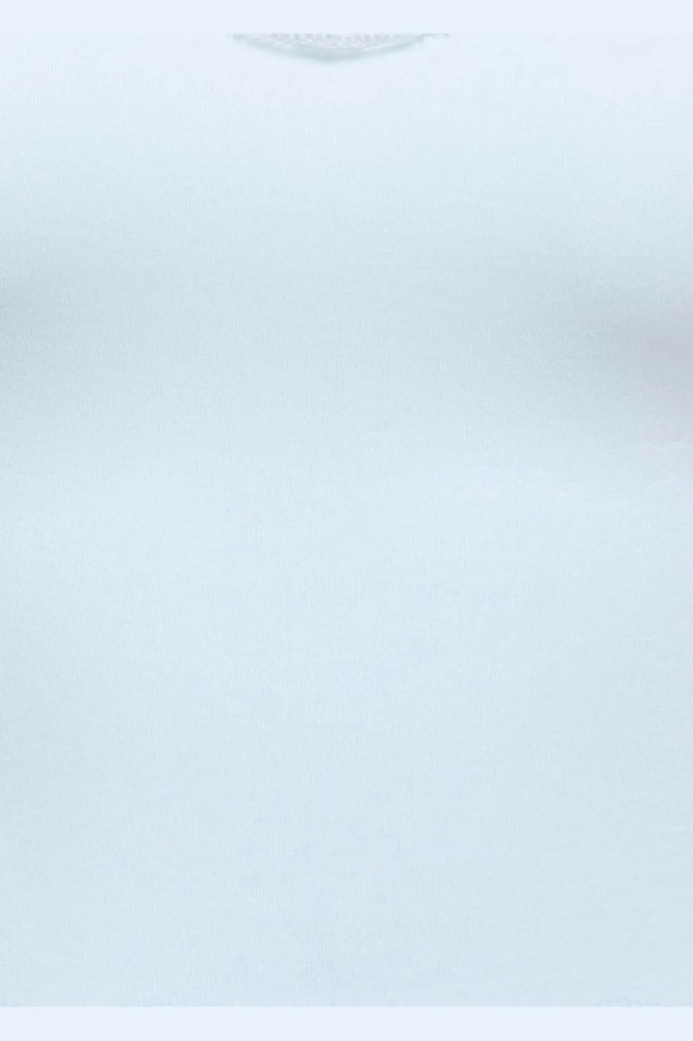 Lyseblå cropped top fra Only med blondedetaljer. Toppen har en v-udskæring med blondekant og tynde stropper. Det sømløse design giver en tætsiddende pasform.