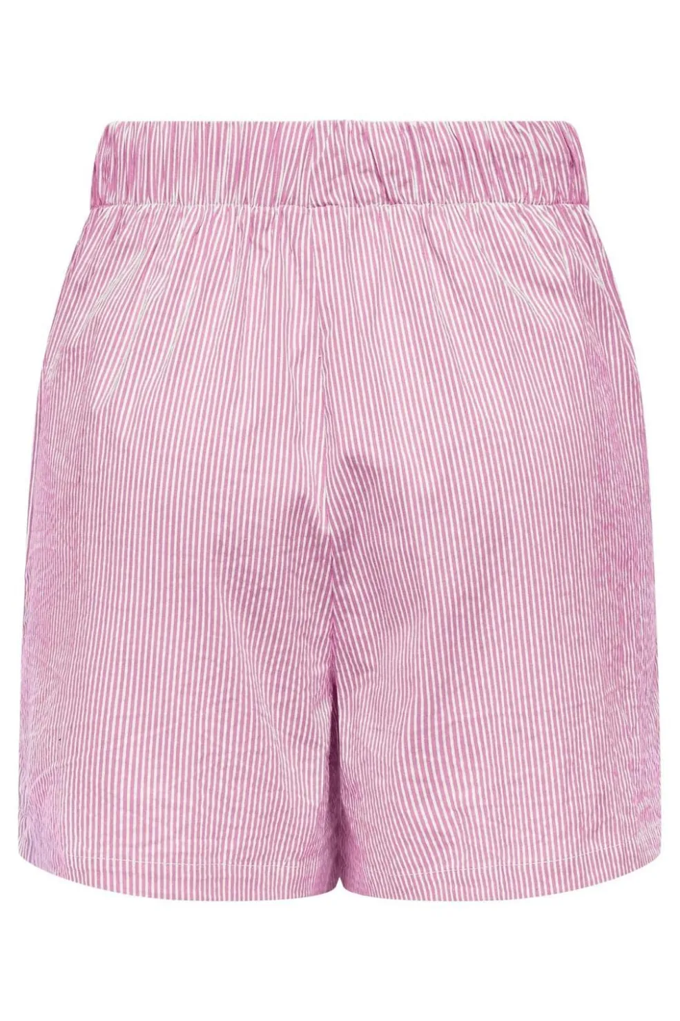 Stribede shorts fra Only i lyserød og hvid. De har en loose fit-pasform og er lavet med et sommerligt design, elastisk linning og snøredetalje.