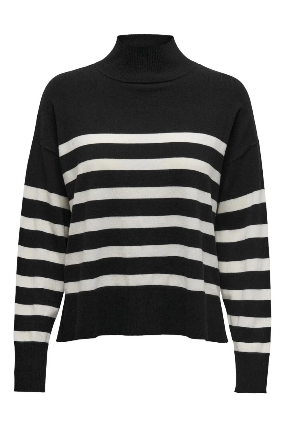 Stribet højhalset striktrøje fra Only med sort og hvidt mønster. Den har lange ærmer og en regular fit, der giver en behagelig pasform.