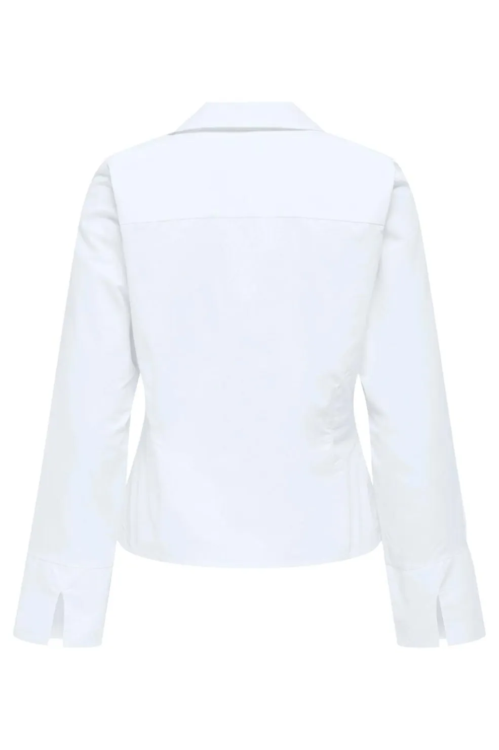Hvid skjorte fra Only, lavet af 100 % bomuld. Skjorten har en slim fit-pasform og lukkes med hægter foran.
