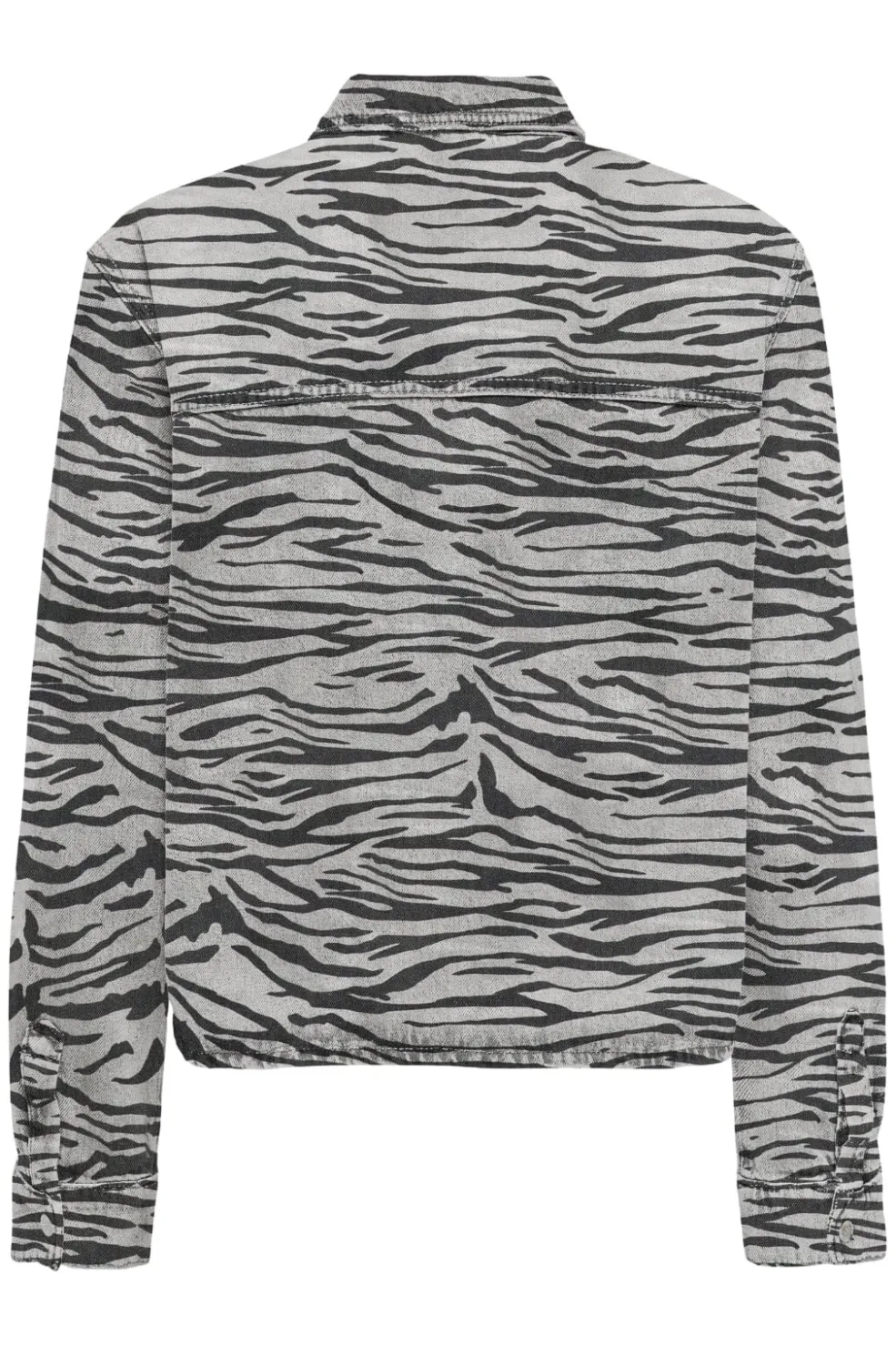 Skjorte fra Only i lys grå denim med zebramønster. Den har en skjortekrave og lange ærmer med en regular fit. To brystlommer og knaplukning giver skjorten et klassisk udtryk.