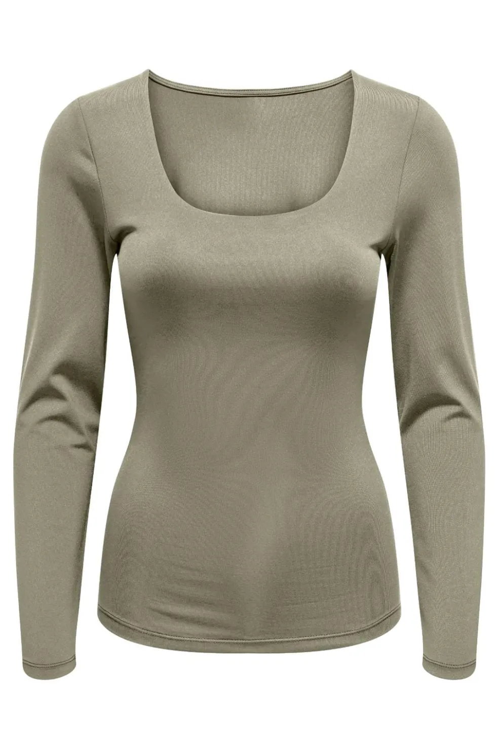 Langærmet top fra Only i en afdæmpet grøn nuance. Toppen har en tovejs dyb halsudskæring og en standardpasform, der giver mulighed for forskellige måder at style den på.