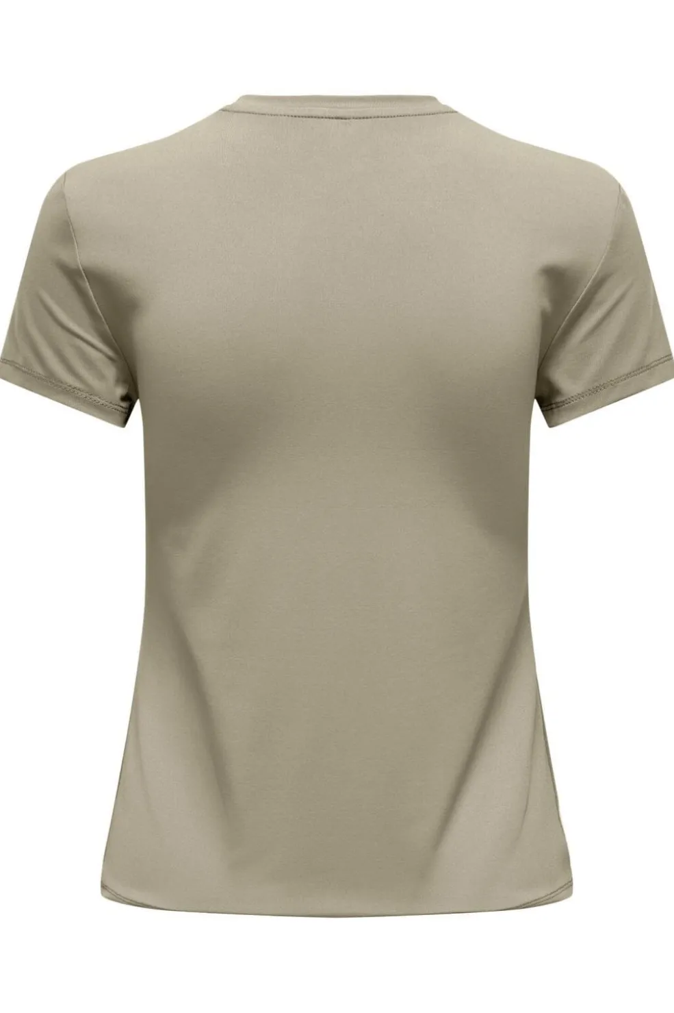 Kortærmet top fra Only i en dæmpet khaki/beige nuance. Toppen har en rund hals og regular fit, der giver god bevægelsesfrihed.