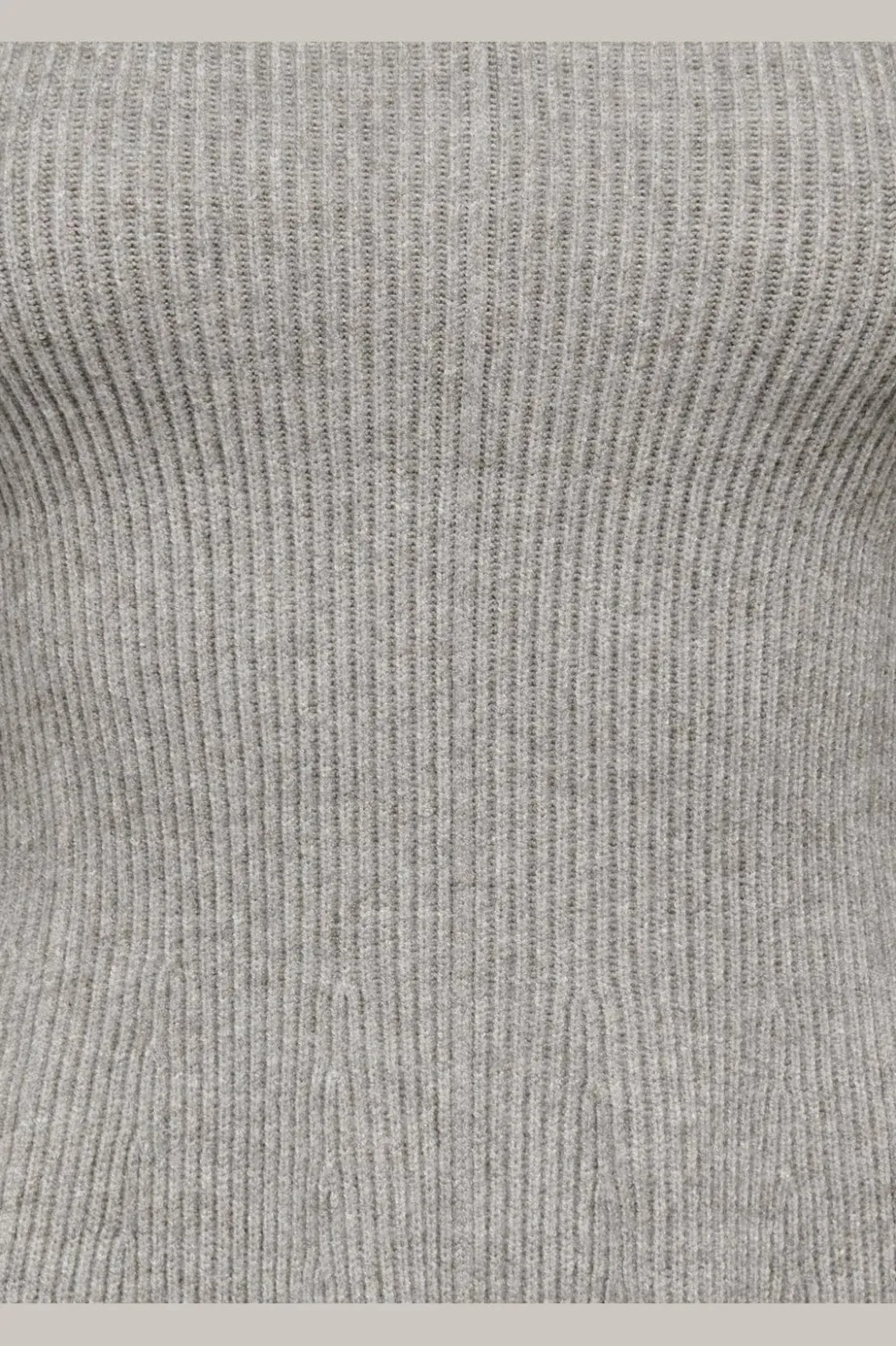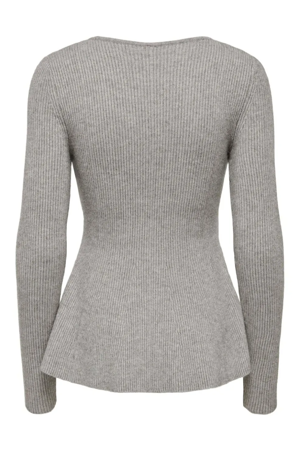 Grå striktrøje fra Only med V-hals og et peplum-lignende design forneden. Trøjen er en pullover uden lukning.