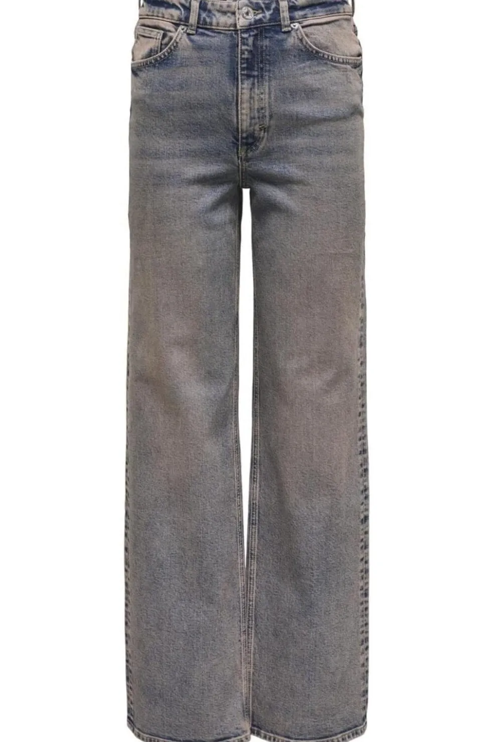 Mørkeblå jeans fra Only med bred benvidde. Bukserne har en gulvlang længde og almindelig talje med bæltestropper.