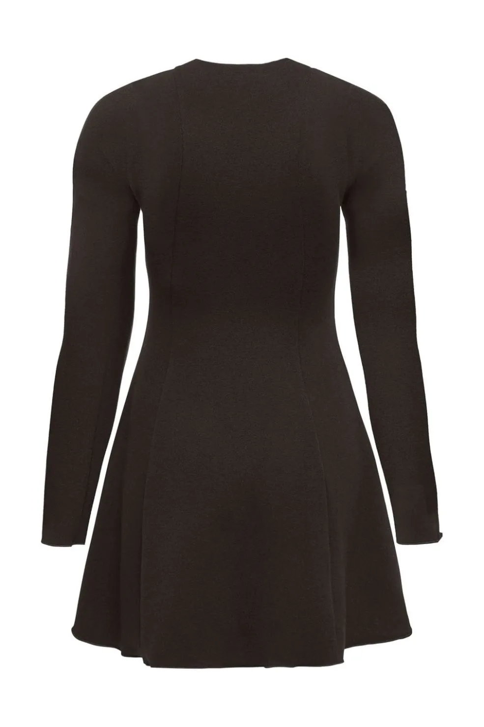 Brun kjole fra Only i knælængde. Den har lange ærmer og en rund halsudskæring. Kjolen er lavet i et blødt materiale med dekorative syninger, der giver den karakter.