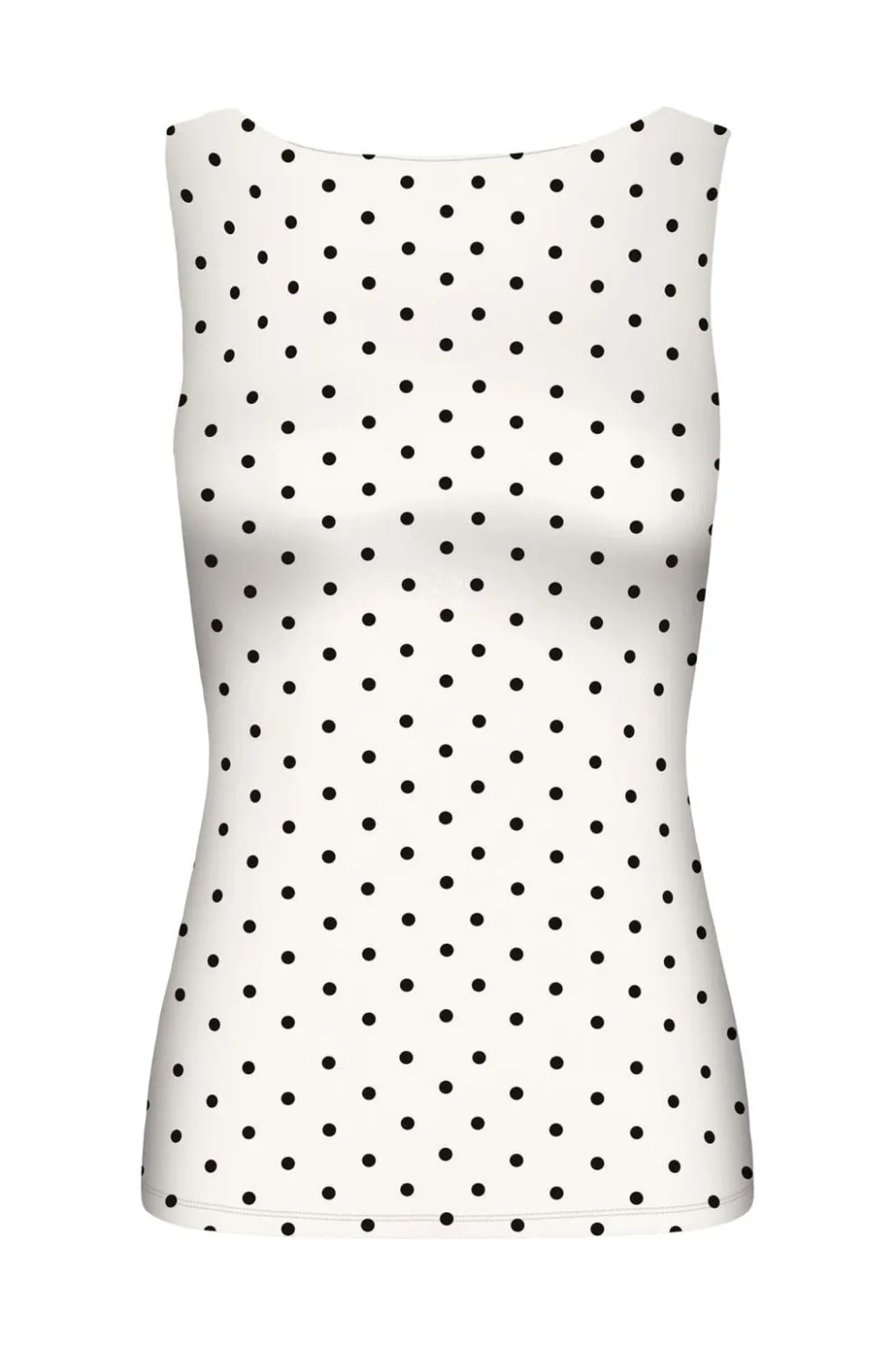 Ærmeløs top fra Only i hvid med sorte prikker. Toppen har en vendbar funktion med to forskellige halsudskæringer og en regular fit-pasform, der giver god bevægelsesfrihed.