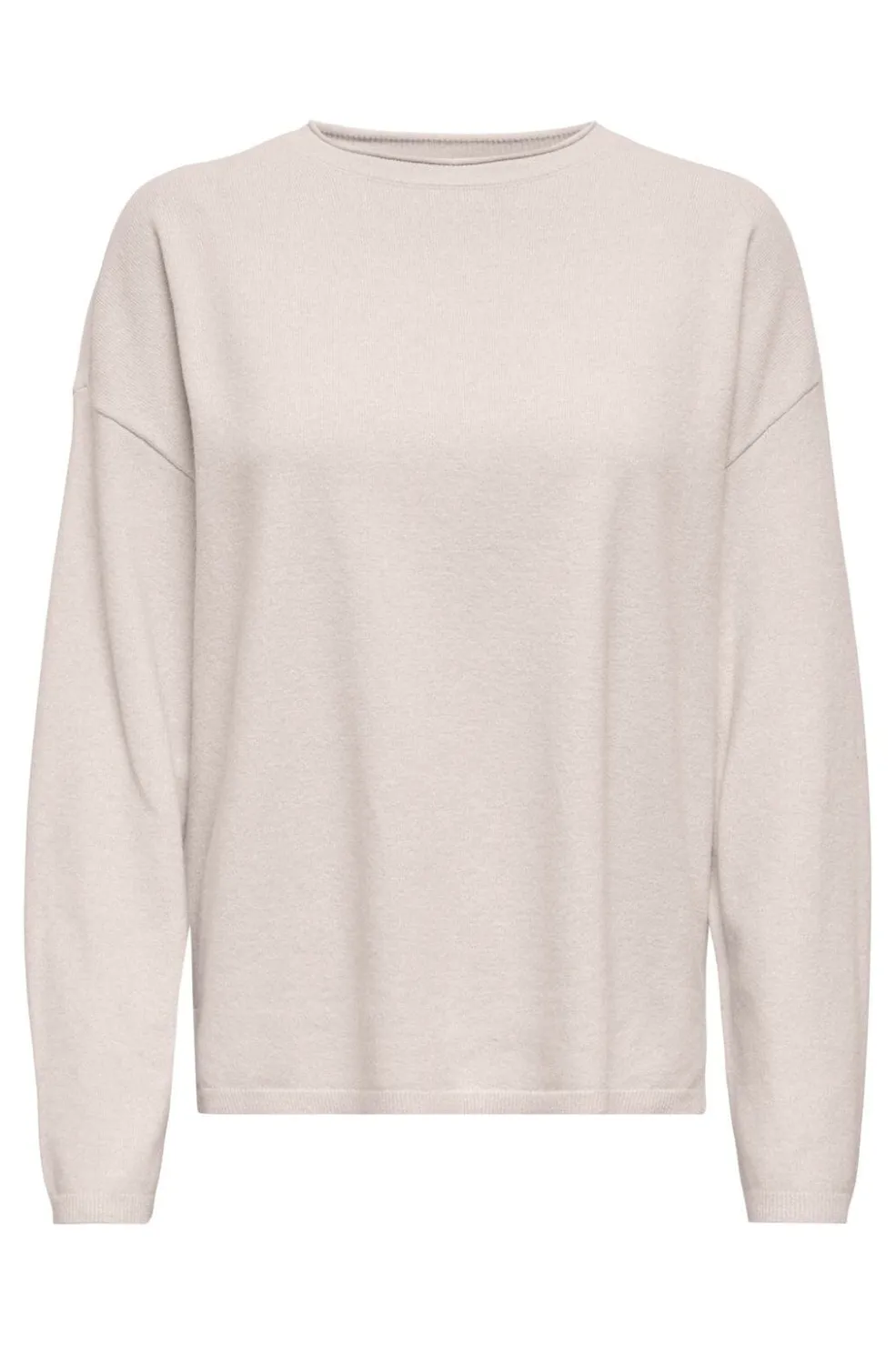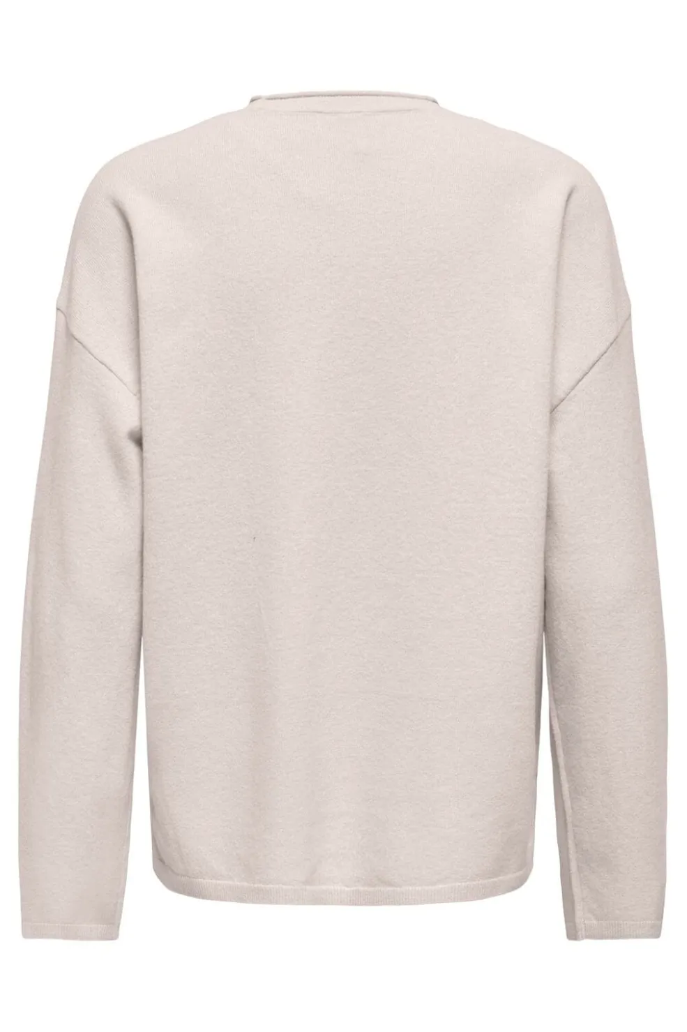 Striktrøje fra Only i en lys beige meleret farve. Trøjen har en rund halsudskæring, lange ærmer og ribstrikkede kanter ved ærmerne og bunden.