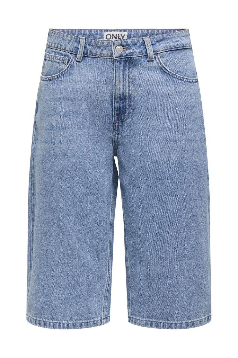 Lyseblå denimshorts fra Only med baggy pasform og mellemhøj talje. De lange shorts har en afslappet stil og er lavet i klassisk denim.
