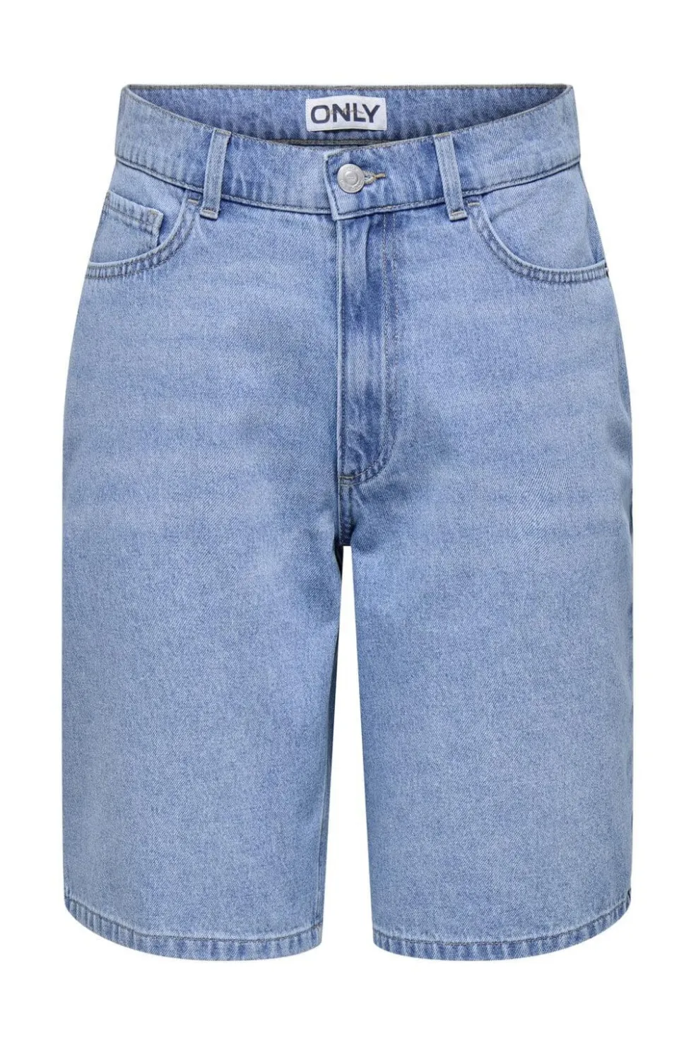 Lyseblå denimshorts fra Only med høj talje og loose fit. Shortsene har knælængde og er fremstillet i klassisk denim med praktiske lommer og bæltestropper.