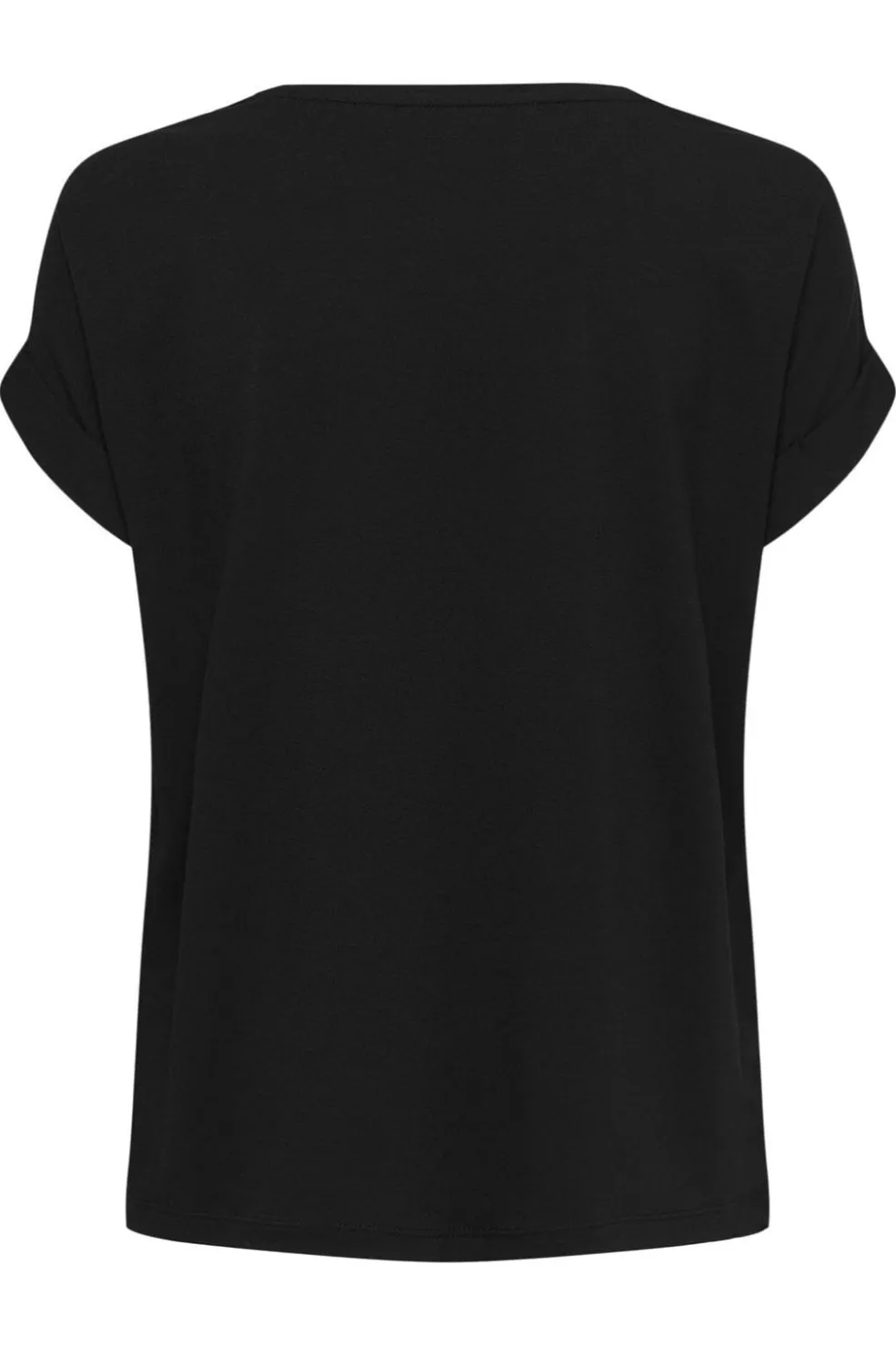 Sort t-shirt fra Only med rund halsudskæring og korte ærmer. T-shirten har en regular fit og er fremstillet i en blød materialekombination med høj andel af viskose.