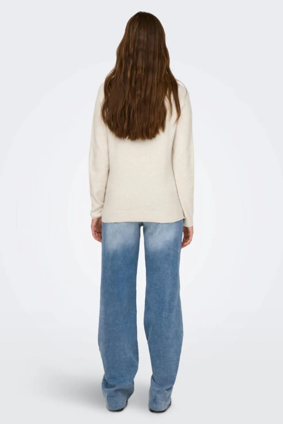 Lys beige striktrøje fra Only med rund halsudskæring og lange ærmer. Den melerede overflade giver striktrøjen en blød struktur, og den regulære pasform sikrer god bevægelsesfrihed.