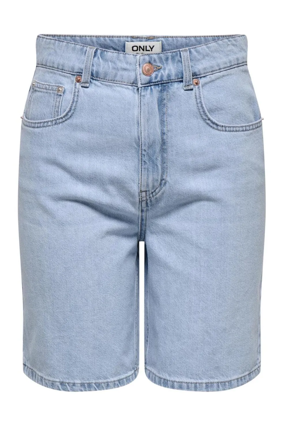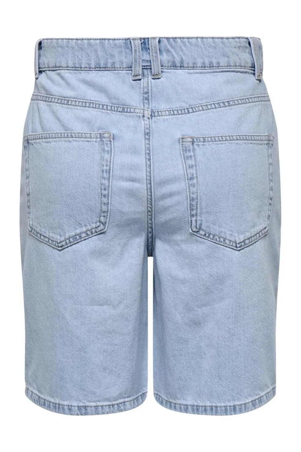 Lyseblå denimshorts med løs pasform og høj talje. Shortsene har en knælang model og er fremstillet i en lys denimkvalitet med klassiske detaljer.