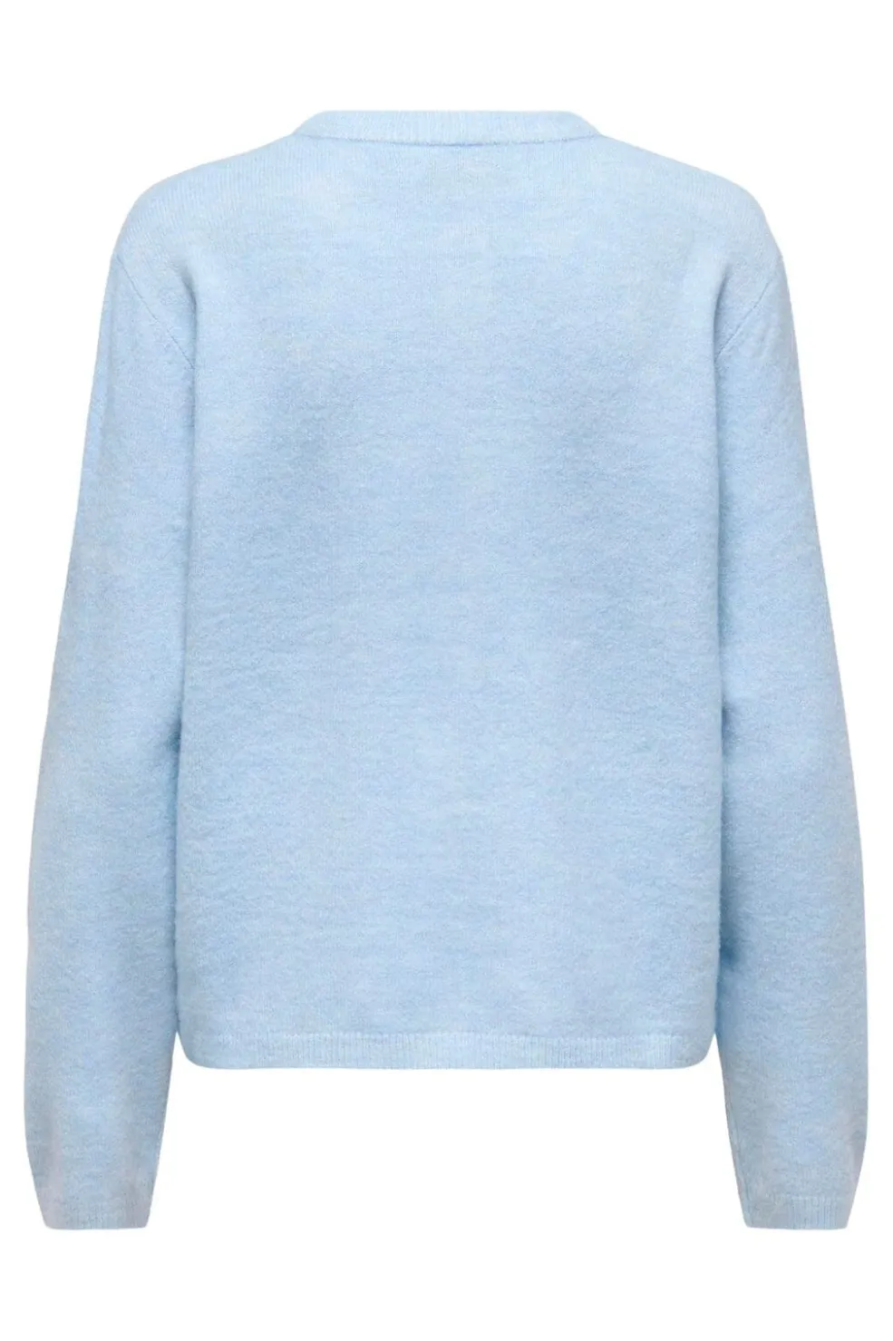 Lyseblå meleret cardigan fra Only med knaplukning. Den har en rund halsudskæring og lange ærmer, og den er designet med en afslappet pasform.