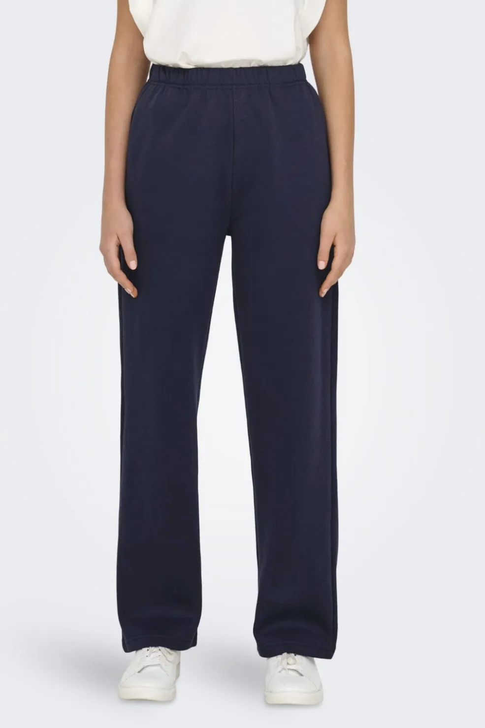Mørkeblå sweatpants fra Only i en afslappet pasform. Bukserne har en elastisk talje og ankellængde, hvilket gør dem nemme at style til både hjemmebrug og afslappede hverdagsoutfits.