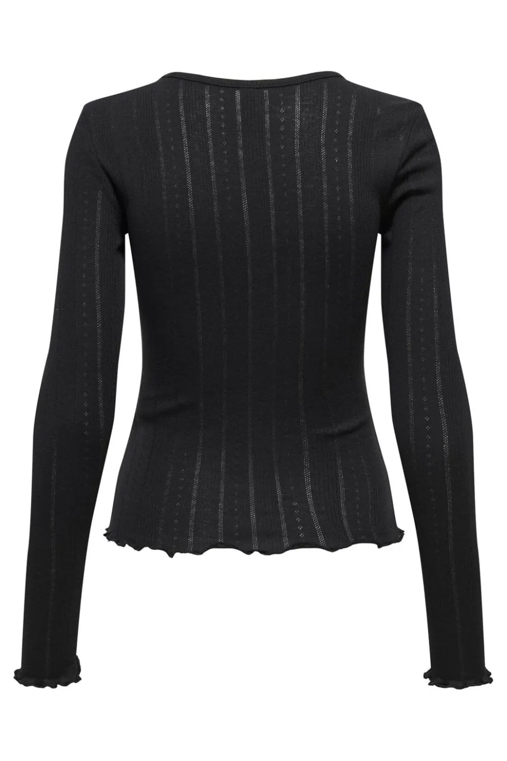 Sort langærmet top fra Only med rund halsudskæring og stribet mønster. Toppen har bølgede kanter ved ærmerne og forneden og kommer i en regular fit-pasform.